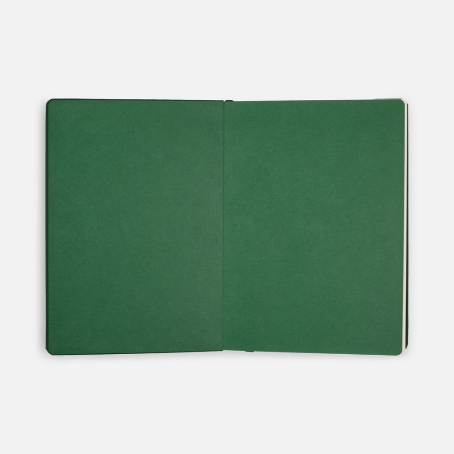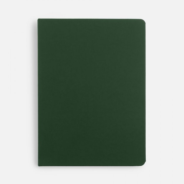 Ежедневник с твердой обложкой и тонированным обрезом, выполнен из материала Soft Touch, зеленый FF, дополнен ляссе в цвет обложки.