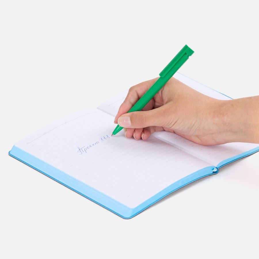 Механизм ручки: нажимной.Корпус ручки не разбирается. Стержень с синими чернилами.
