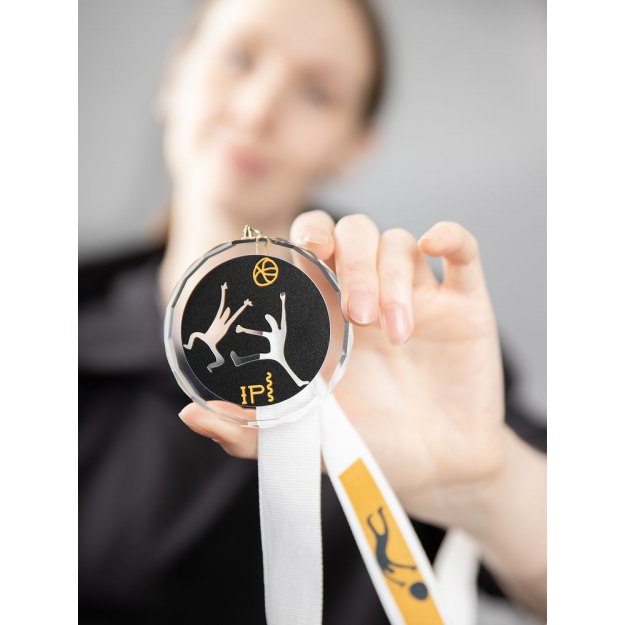 Медаль изготовлена из хрусталя К9, в основе которого лежит оптическое боросиликатное стекло. Эту марку хрусталя отличает низкий процент посторонних включений, высокий показатель преломления и высокая прозрачность — идеальные качества для изготовления наград премиального уровня.