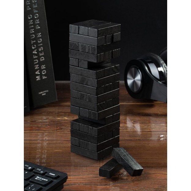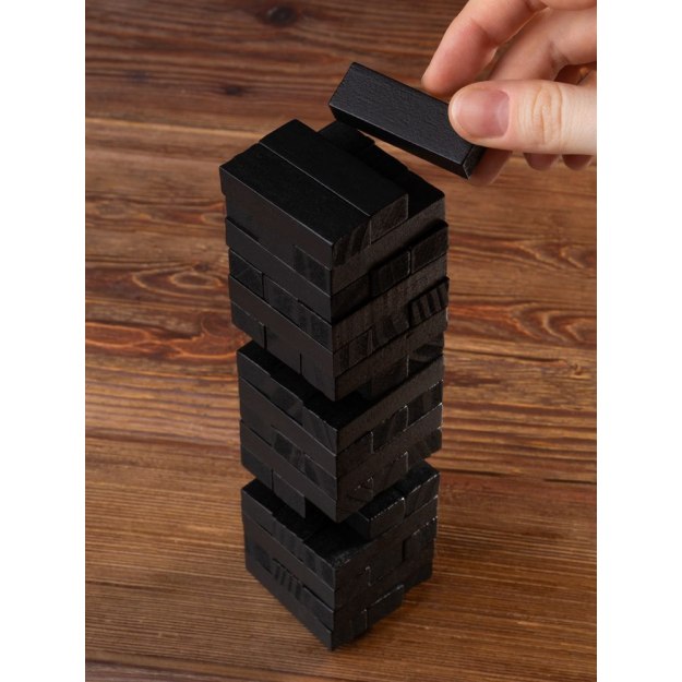 Второе название игры — «Падающая башня». Сначала строится башня: по три брусочка в ряд, каждый слой перпендикулярен предыдущему. Затем игроки по очереди вытаскивают по одному брусочку и кладут его на верх сооружения. Тот игрок, кто обрушит башню, проиграл. Игра тренирует ловкость, внимание, терпение и пространственное мышление, что очень важно и в бизнесе. Так что подарок не только развлечет, но и может стать символом-пожеланием.