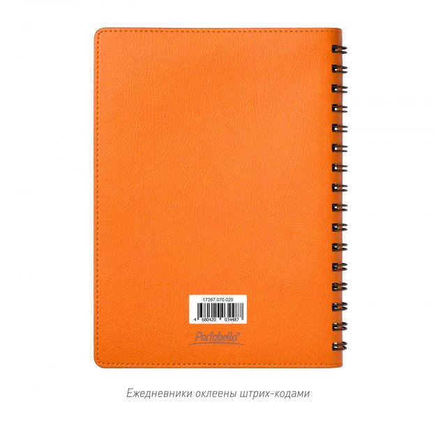 Недатированный ежедневник в гибкой обложке со скругленными уголками из искусственной кожи. Обложка выполнена из сшивки двух материалов. Внешний материал обложки – матовый, с некрупным рельефом под натуральную кожу. Цвет – сочный оранжевый, насыщенный, динамичный, однородный. Внутренний материал обложки – Latte – бархатистый, мелкозернистый, однородного коричневого цвета. По периметру обложки выполнена прошивка в тон. Форзац и нахзац контрастные, коричневого цвета. Телпые кремовые страницы со скругленными уголками выполнены из гладкого шелковистого офсета. Срез матовый, в тон страниц. Ежедневник надежно скреплен полускрытой пружиной в цвет внутреннего материала обложки. Изделие комплектуется вкладышем с цветными стикерами и индивидуальной упаковкой.Упаковка: пластиковая коробка - есть