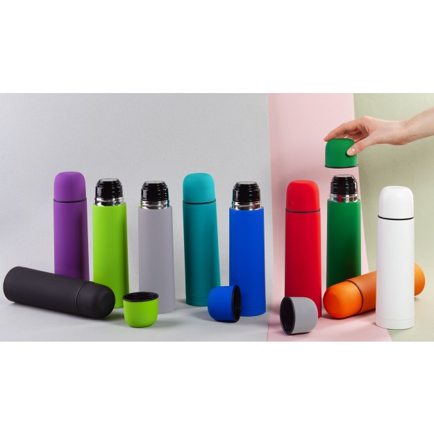 Термос "Крит" - это идеальная форма, сочные цвета, универсальный размер, объем, уникальное прорезиненное напыление soft-touch.Термос изготовлен из пищевой стали с двойными стенками и вакуумной термоизоляцией.Возможность гравировки логотипа по окружности встык сделает термос совершенно особенным и неповторимым.Кнопочный клапан открывается одним нажатием кнопки, что позволяет быстро и легко наливать жидкость из термоса. Термос "Крит" сделает путешевствие комфортным, отдых - незабываемым, а занятия спортом удобным.