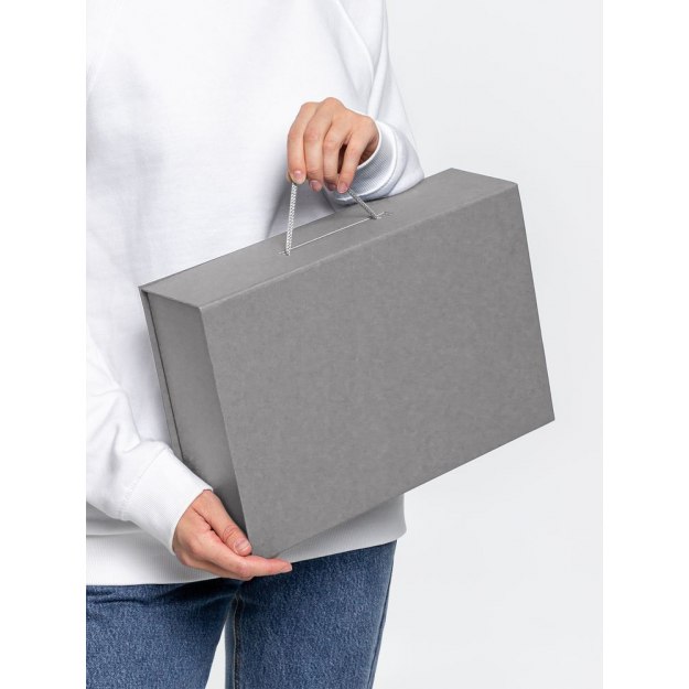 Коробка выполнена из переплетного картона, кашированного дизайнерской бумагой Malmero, с крышкой на магнитах.