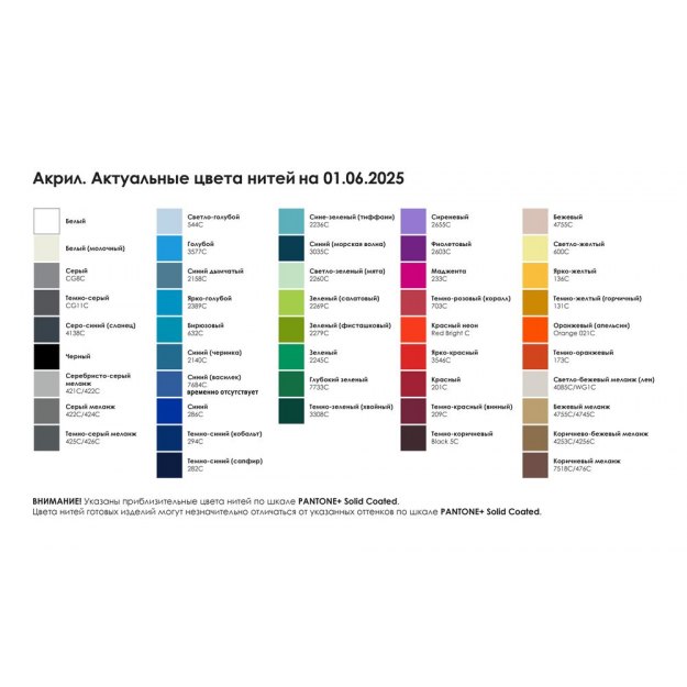 Цвет: выберите цветовое решение по таблице «Актуальные цвета нитей» (на фото).