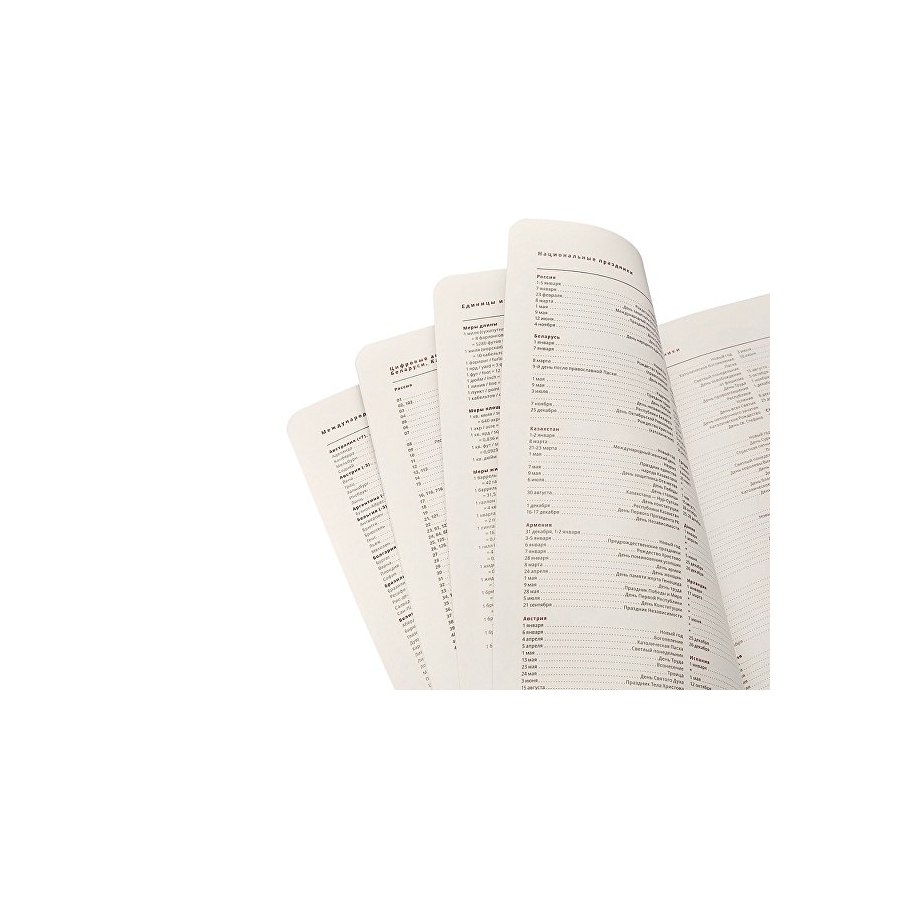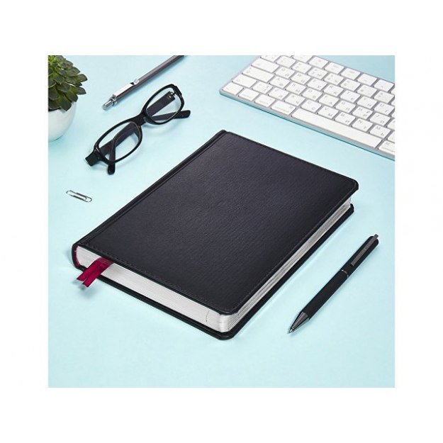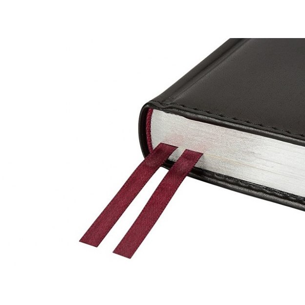 Элегантный ежедневник с серебристым обрезом подчеркивает статус владельца. В качестве дополнительных практичных элементов предусмотрен отрывной угол блока и ляссе.
