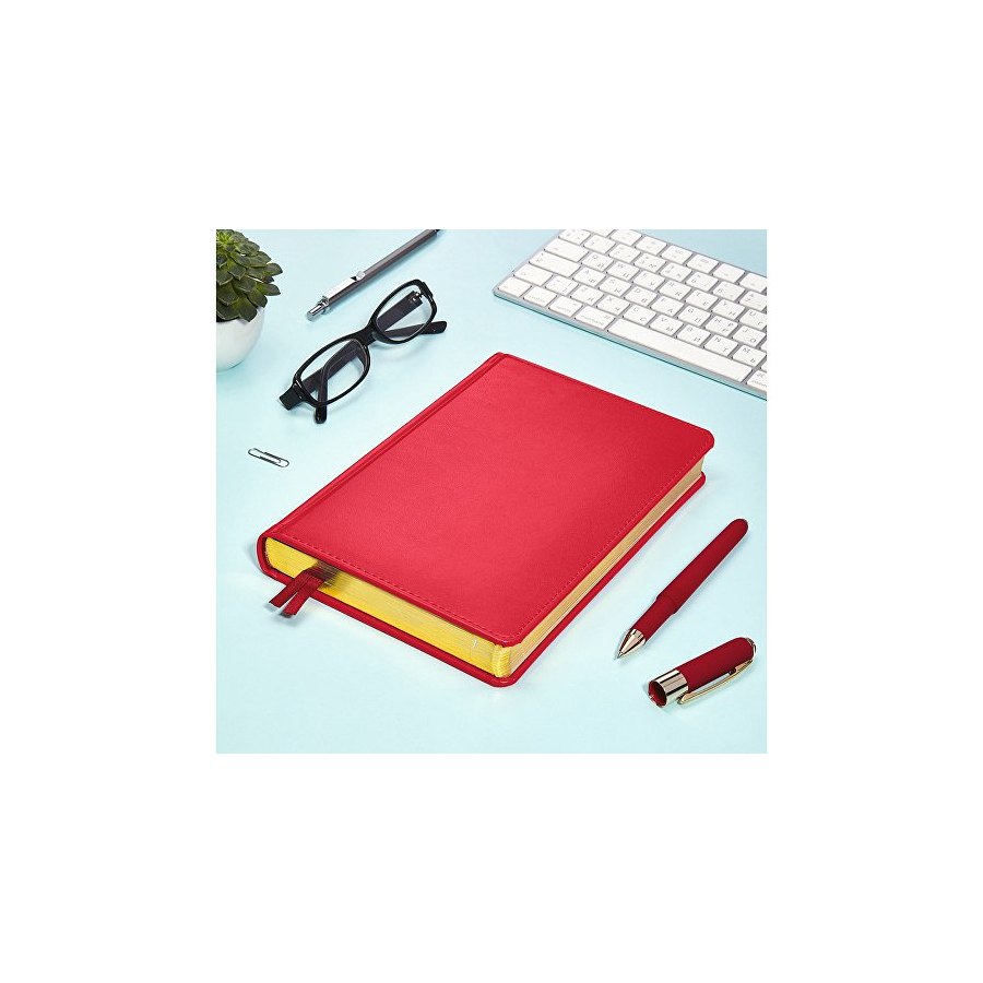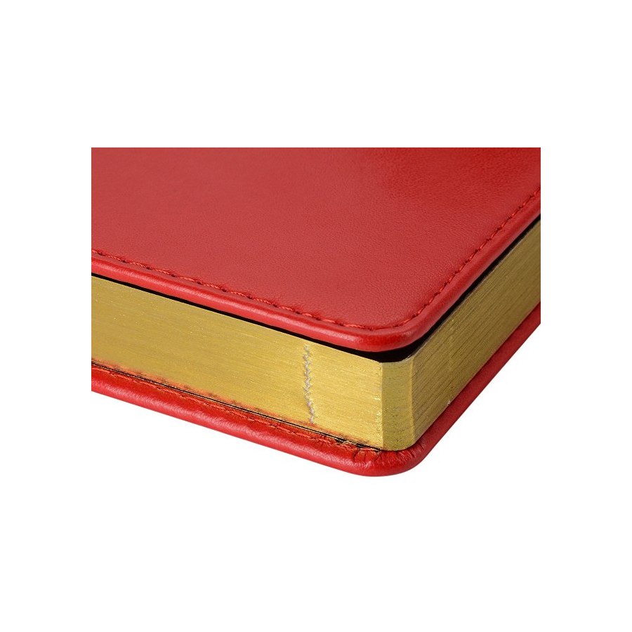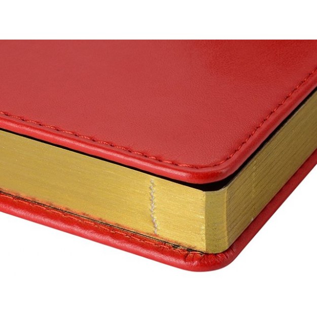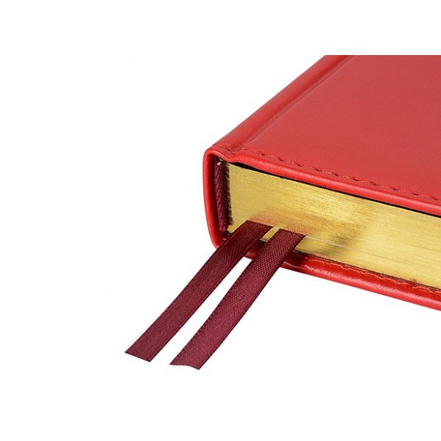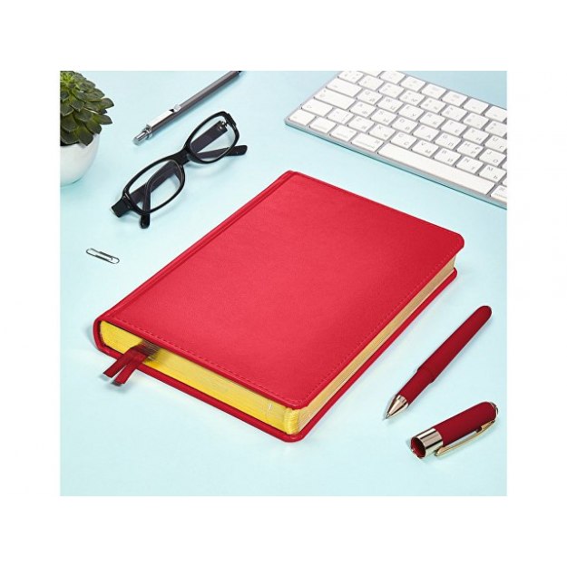 Элегантный ежедневник с золотым обрезом подчеркивает статус владельца. В качестве дополнительных практичных элементов предусмотрен отрывной угол блока и ляссе.