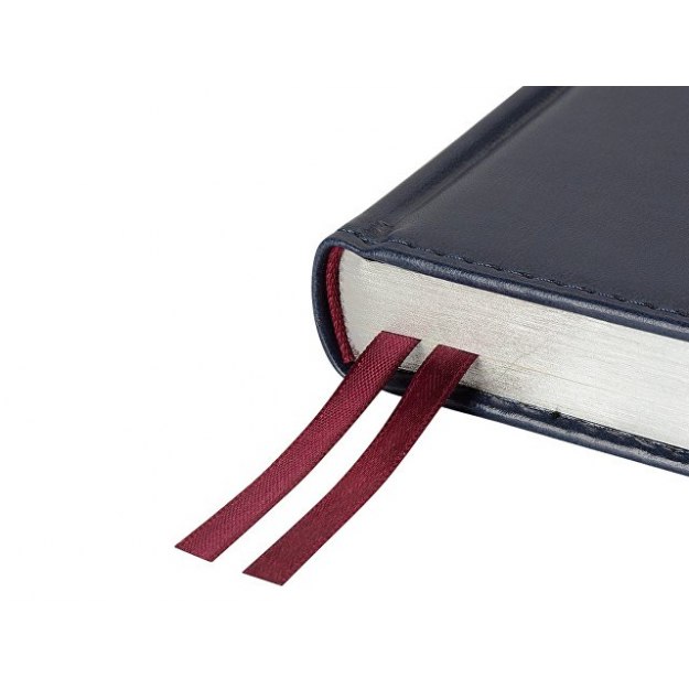 Элегантный ежедневник с серебристым обрезом подчеркивает статус владельца. В качестве дополнительных практичных элементов предусмотрен отрывной угол блока и ляссе.