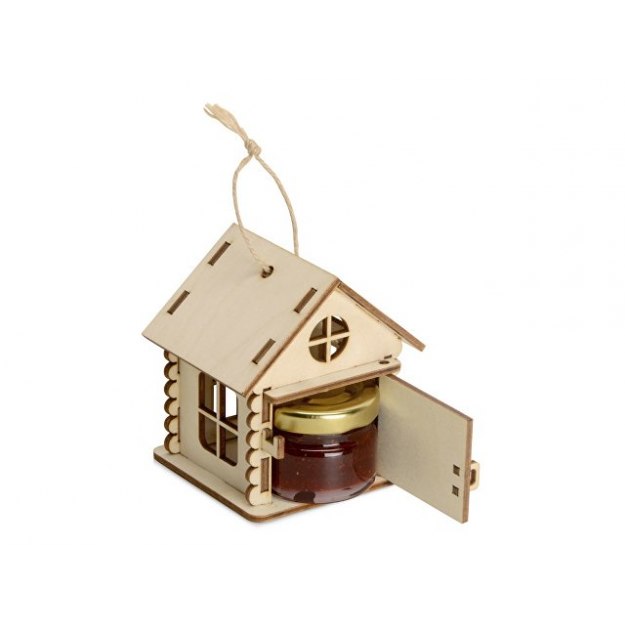 В домике открывается дверца, и в него можно поместить небольшую баночку с медом или вареньем. Оригинальная конструкция сувенира украсит любой интерьер, как в офисе, так и в квартире. Подарочная упаковка Домик позволит вам сделать оригинальный и запоминающийся подарок для руководителя или коллеги.
