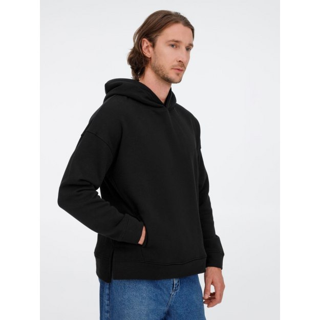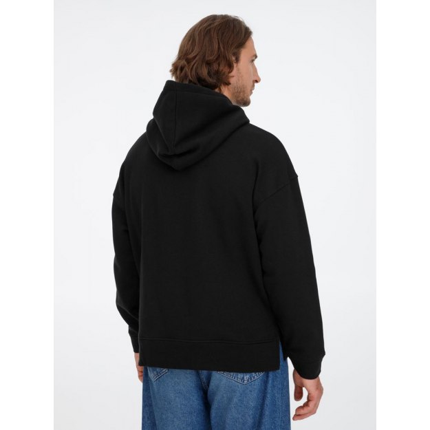 Худи унисекс оверсайз со спущенным плечом и внутренним карманам кенгуру.
