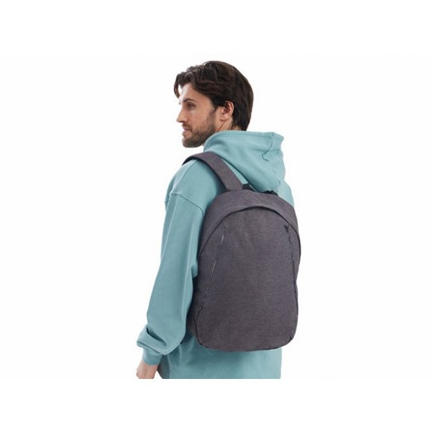 Материал, из которого сделан этот рюкзак, имеет светоотражающее камуфляжное нанесение. Спереди расположены 2 светоотражающие полосы. Все это обеспечивает дополнительную безопасность в темное время суток. - 2 уплотненных внутренних кармана для ноутбука и планшета с креплением на эластичных ремнях - органайзер - карман внутри для мелочей - дышащая сетчатая спинка - ремень для крепления на чемодан - регулируемые по длине лямки