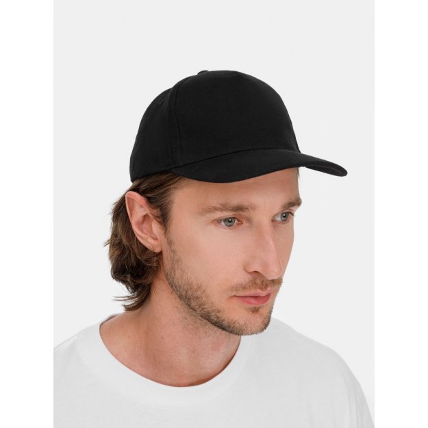 Модель: 5 клиньев без лобового шва, плотный хлопок с начесом, обшивные люверсы, металлическая застежка, козырек "сэндвич".
