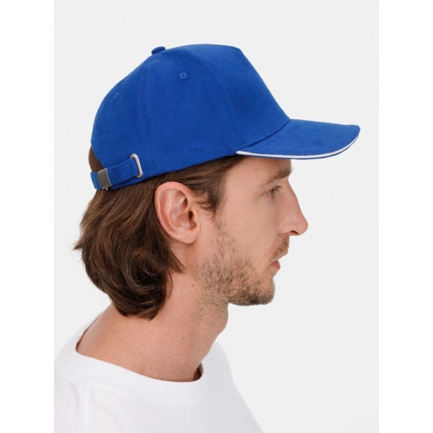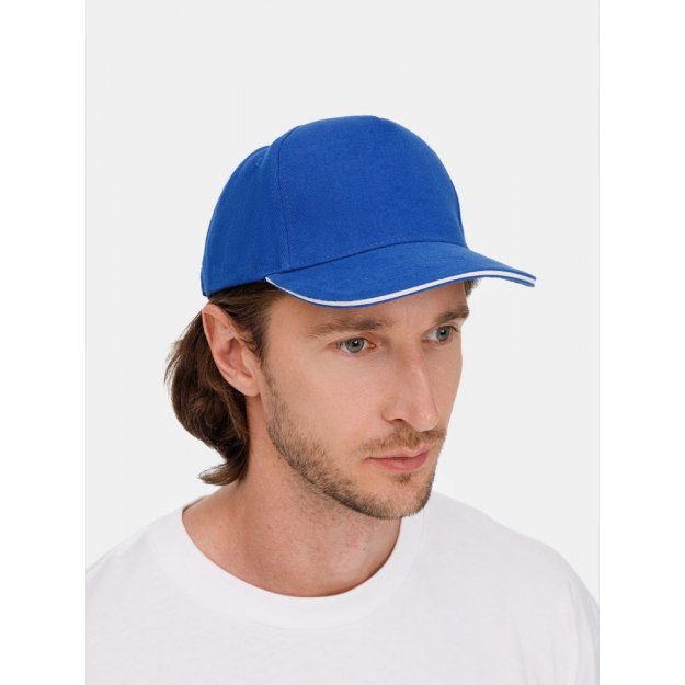 Модель: 5 клиньев без лобового шва, плотный хлопок с начесом, обшивные люверсы, металлическая застежка, козырек "сэндвич".
