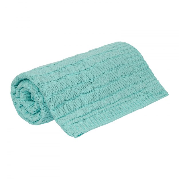 Интересный бирюзовый цвет пледа сделает его отличным дополнением к интерьеру.
