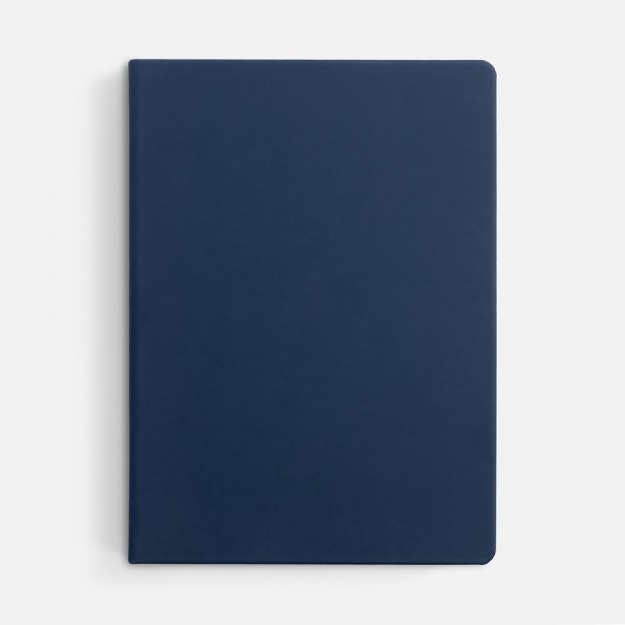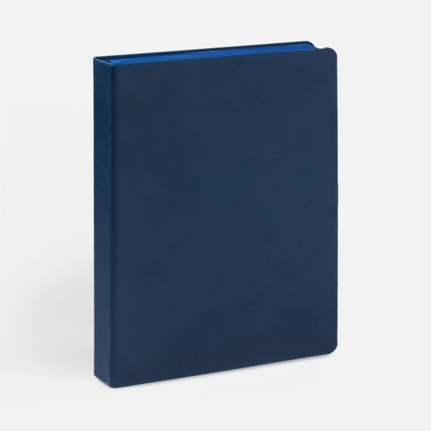 Ежедневник с твердой обложкой и тонированным обрезом, выполнен из материала Soft Touch, синий НН, дополнен ляссе в цвет обложки.