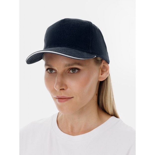 Модель: 5 клиньев без лобового шва, плотный хлопок с начесом, обшивные люверсы, металлическая застежка, козырек "сэндвич".