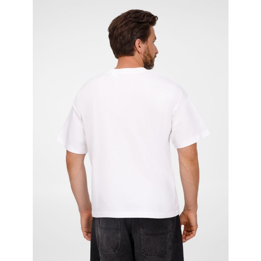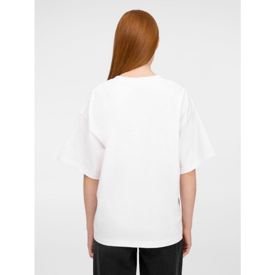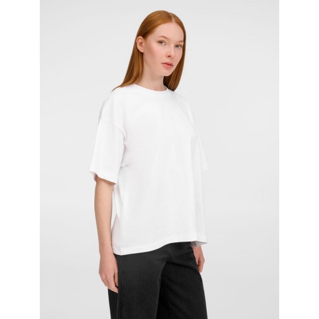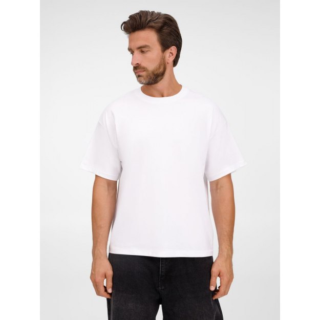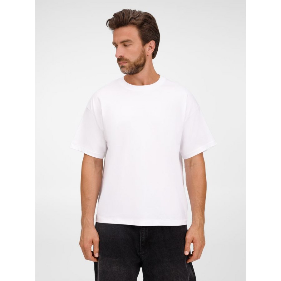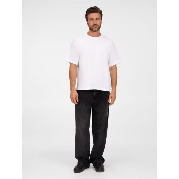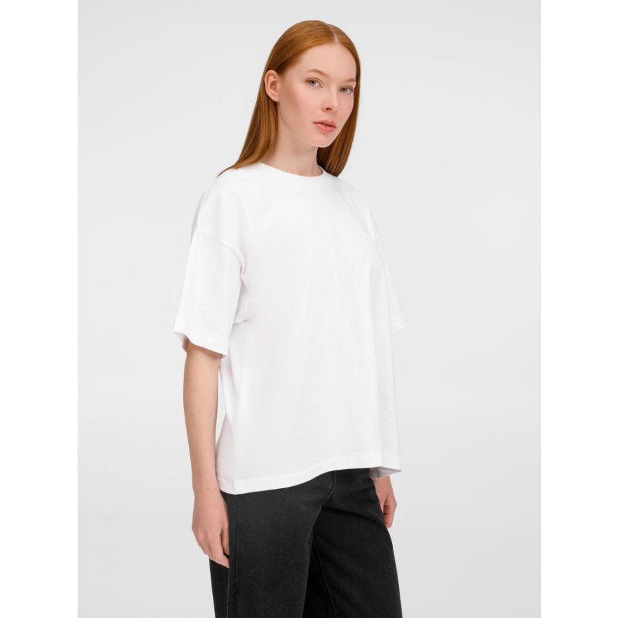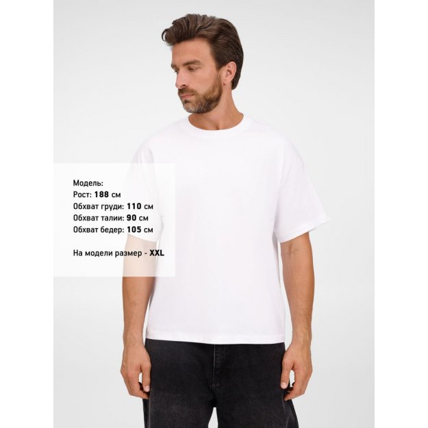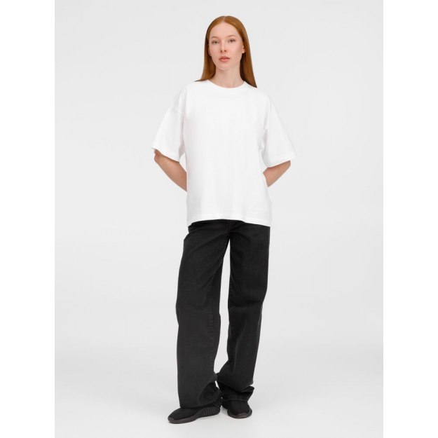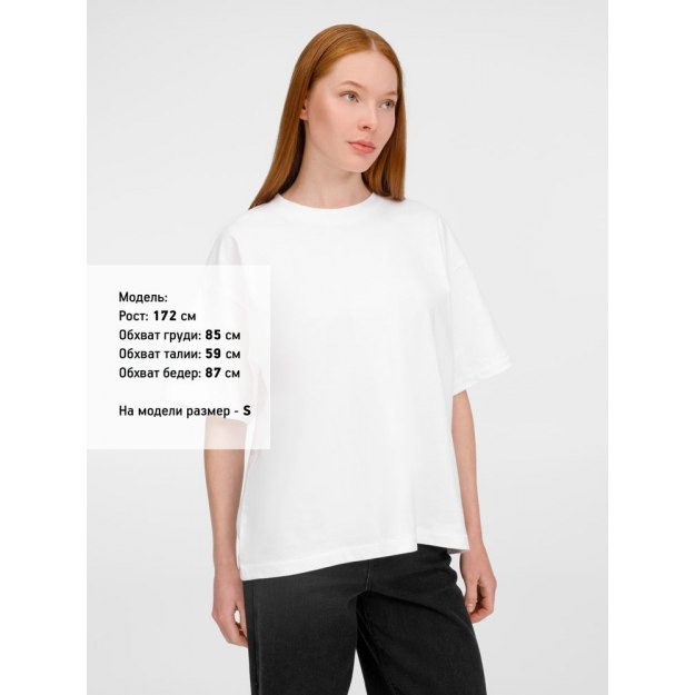 Футболка оверсайз унисекс с круглым вырезом и без боковых швов. Выполнена из смеси органического и обычного хлопка. Благодаря повышенной плотности отлично держит форму.
