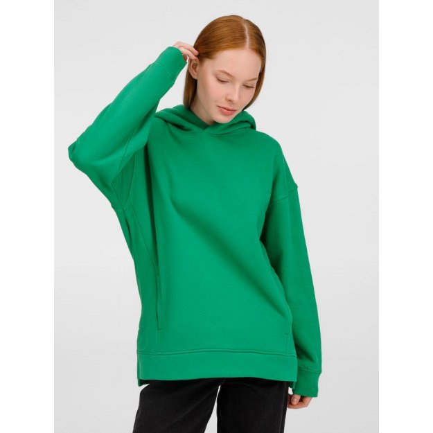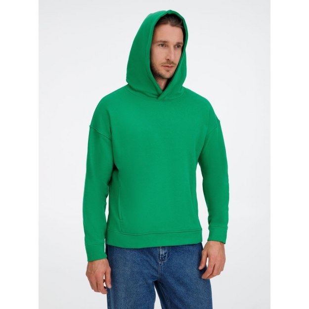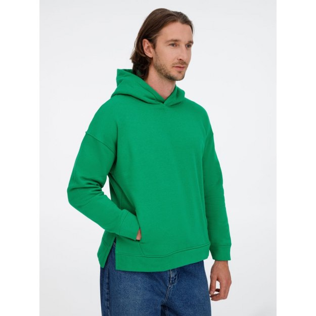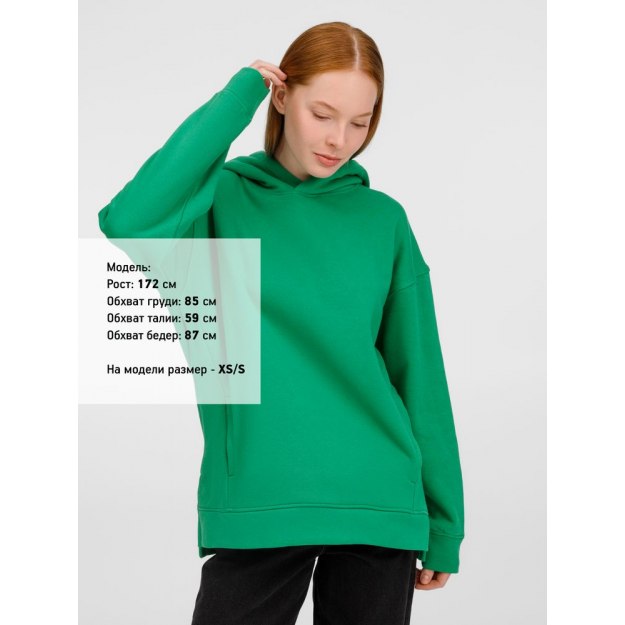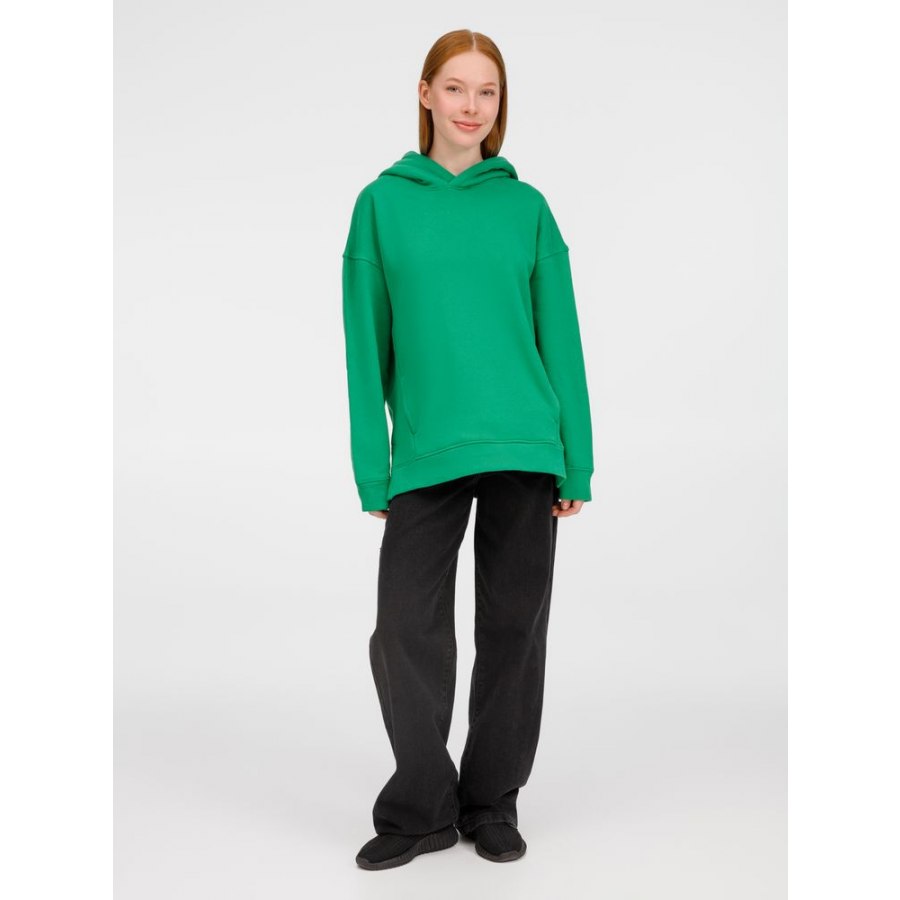 Худи унисекс оверсайз со спущенным плечом и внутренним карманом кенгуру.