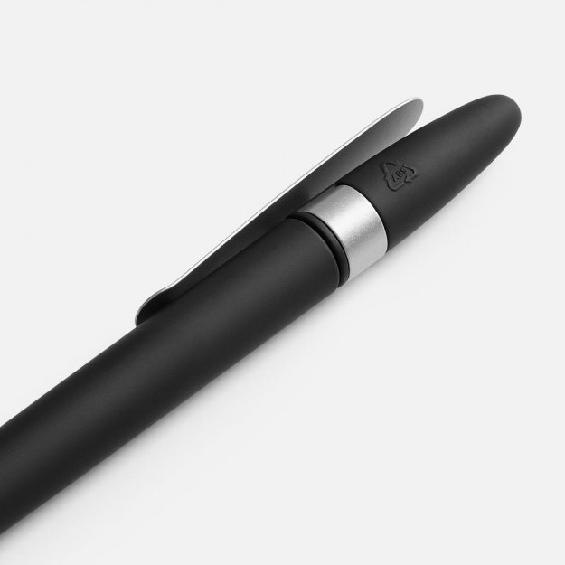 Корпус из переработанного пластика с покрытием софт-тач и клип из металла.