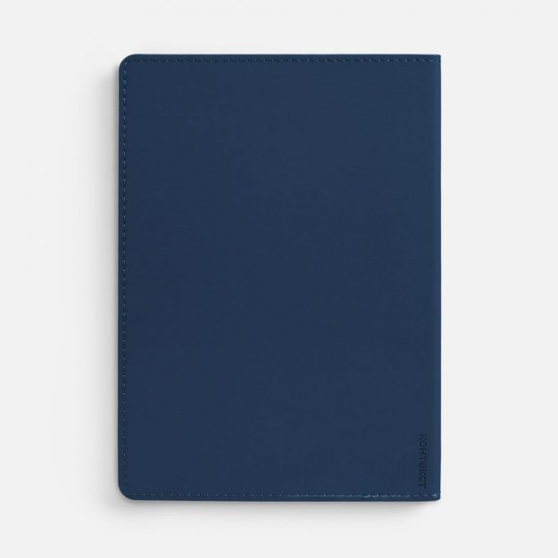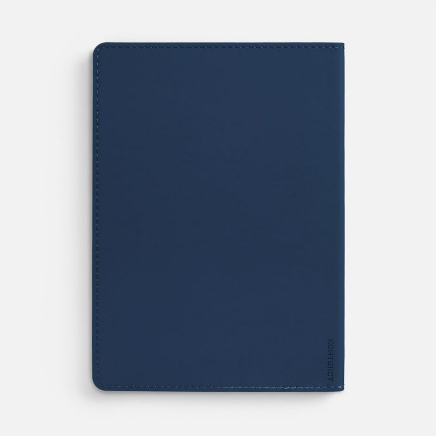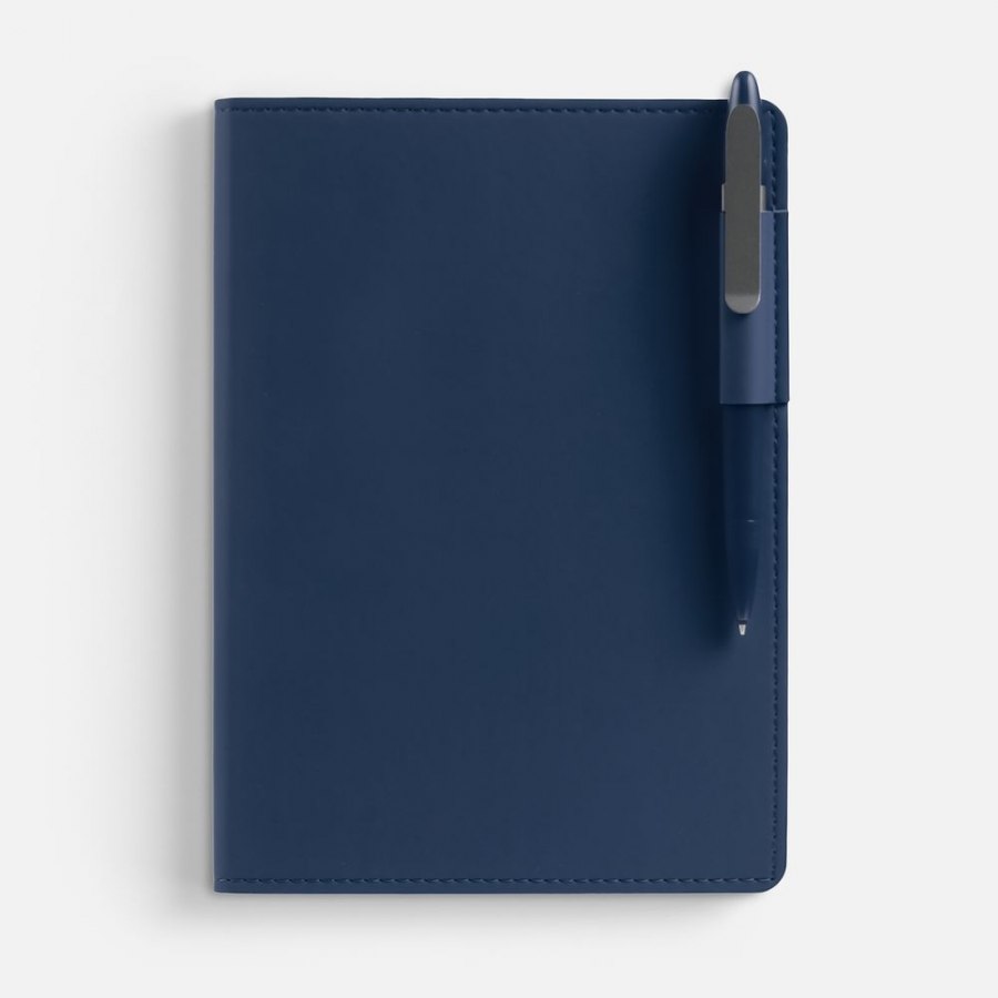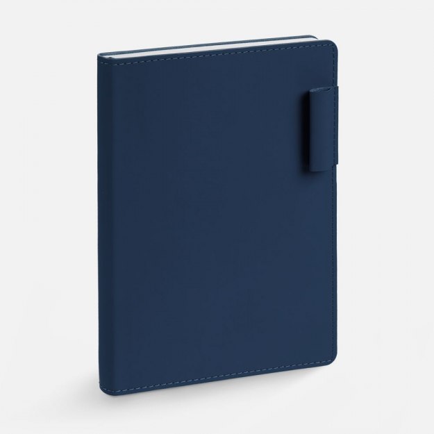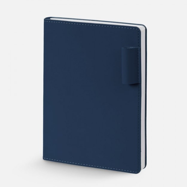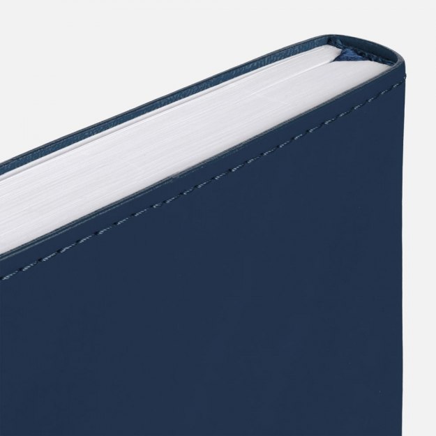 Ежедневник с гибкой обложкой из материала Soft Touch, синий НН и Latte, темно-синий, дополнен петелькой для ручки из покровного материала, капталом, ляссе и закрашенным срезом обложки в цвет материала. Блок 985, без календарной сетки: