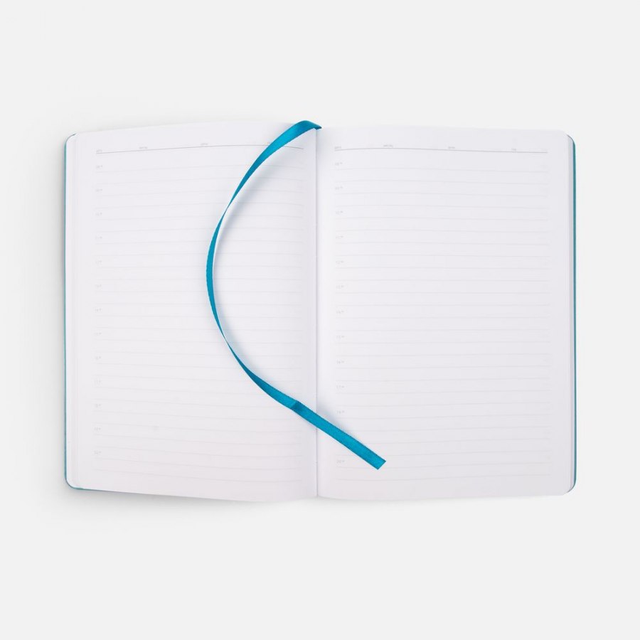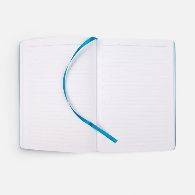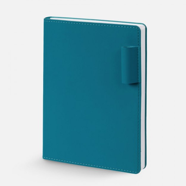 Ежедневник с гибкой обложкой из материала Soft Touch, цвет морской волны II и Latte, морской волны, дополнен петелькой для ручки из покровного материала, капталом, ляссе и закрашенным срезом обложки в цвет материала. Блок 985, без календарной сетки: