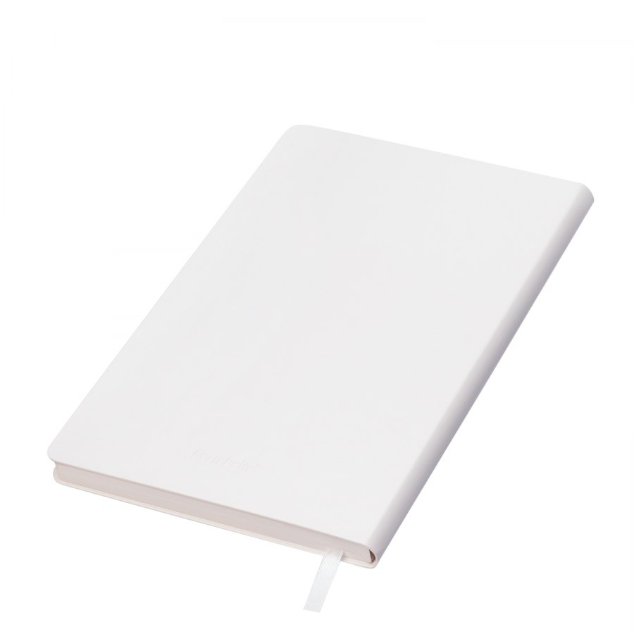 Недатированный ежедневник отличает интересная цветовая гамма. Обложка гибкая, со скругленными уголками из искусственной кожи с эффектом «венецианской штукатурки». На ощупь поверхность гладкая, глянцевая, фактурно ощущается характерный для кожи мелкий рельеф. Цвет обложки – белый. Тон за счет фактуры может меняться в зависимости от освещения. Цвет матовых форзаца и нахзаца – белый. Срез матовый, выполнен в тон форзаца и нахзаца. Страницы со скругленными уголками теплого светло-кремового оттенка из гладкого шелковистого офсета. Одинарное атласное белое ляссе с легким глянцевым отливом. Ширина ляссе 6 мм. Упаковка: нет (без упаковки, без стикеров).
