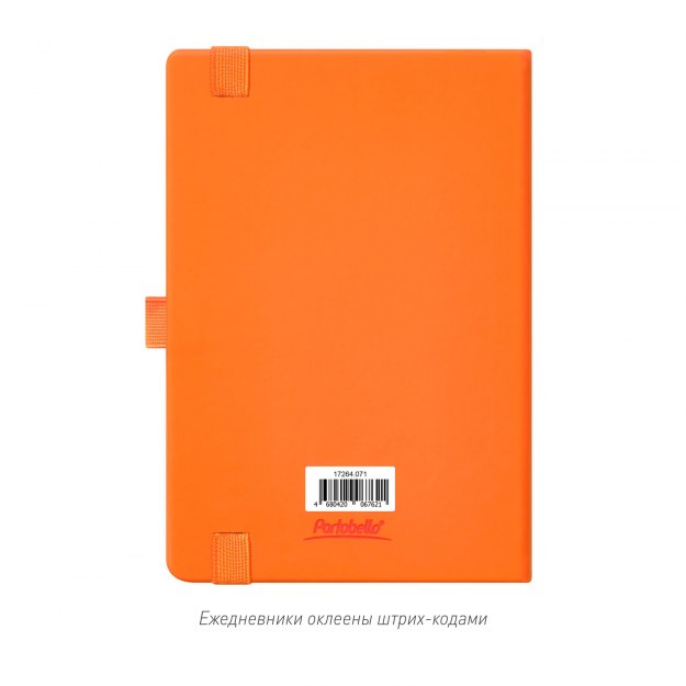 Недатированный ежедневник выполнен в жесткой обложке из искусственной кожи со скругленными уголками. Переплетный материал Soft Touch гладкий, матовый, однородный, с эффектом пудры. Цвет – насыщенный оранжевый, динамичный. Страницы светло-кремового оттенка создают контраст с цветовым решением обложки. Выполнены из гладкого офсета, шелковистые, комфортны и приятны руке. Имеют скругленные уголки. Форзац и нахзац матовые оранжевые в тон обложки. Общая тональность изделия яркая, природная, гармоничная. Срез матовый, в тон страниц. Одинарное атласное ляссе оранжевого цвета шириной 6 мм, с легким блеском. Фиксирующая резинка плотная, темно-синего цвета, декорирована прямоугольным фрагментом из материала обложки с прошивкой в тон. Петелька для ручки в тон резинки. Упаковка: пластиковая коробка – есть.