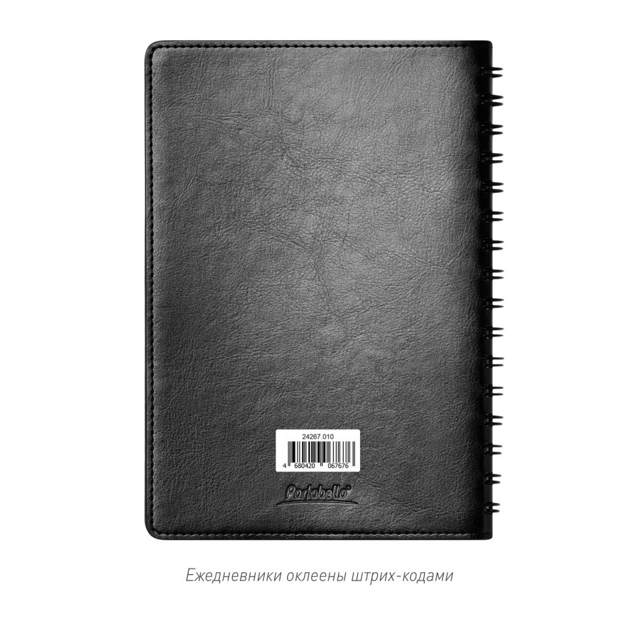 Недатированный ежедневник на пружине в гибкой обложке из качественной искусственной кожи. Обложка выполнена из сшивки двух материалов. Материал обложки гладкий, текстурированный, с полуглянцевым блеском. По периметру обложки выполнена прошивка в тон. Скругленные углы обложки и внутреннего блока. Ежедневник надежно скреплен полускрытой пружиной в цвет обложки. Страницы блока и срез кремовые. Форзац/нахзац - в цвет обложки.