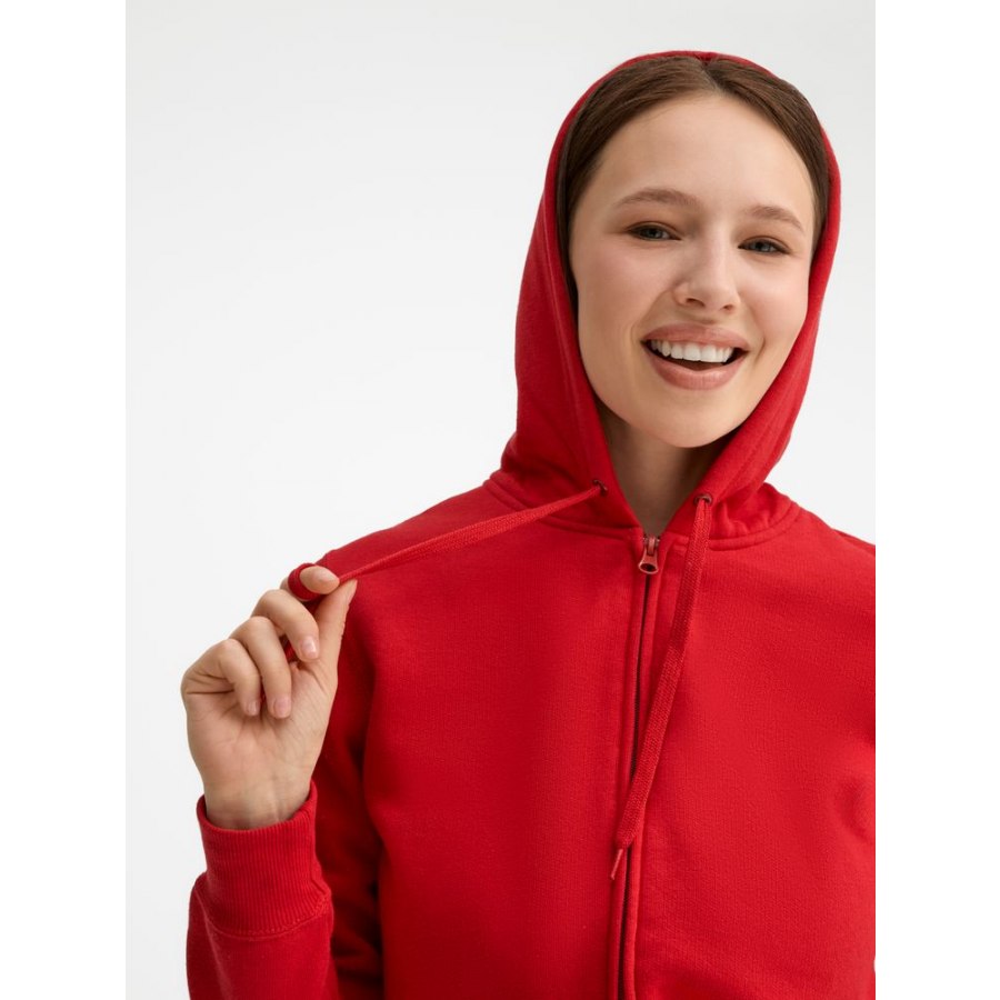 Внутренняя сторона из мольтона с начесом. Низ толстовки и манжеты связаны резинкой с эластаном. Эластичный стягивающий шнур по низу. Скрытая молния.