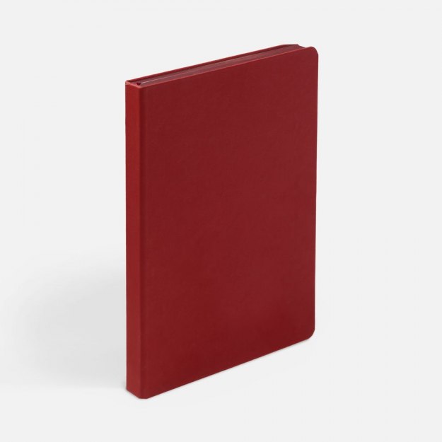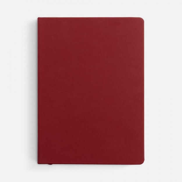 Ежедневник с твердой обложкой и тонированным обрезом, выполнен из материала Soft Touch, красный РР, дополнен ляссе в цвет обложки.