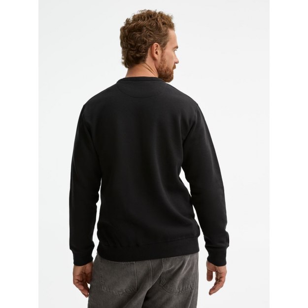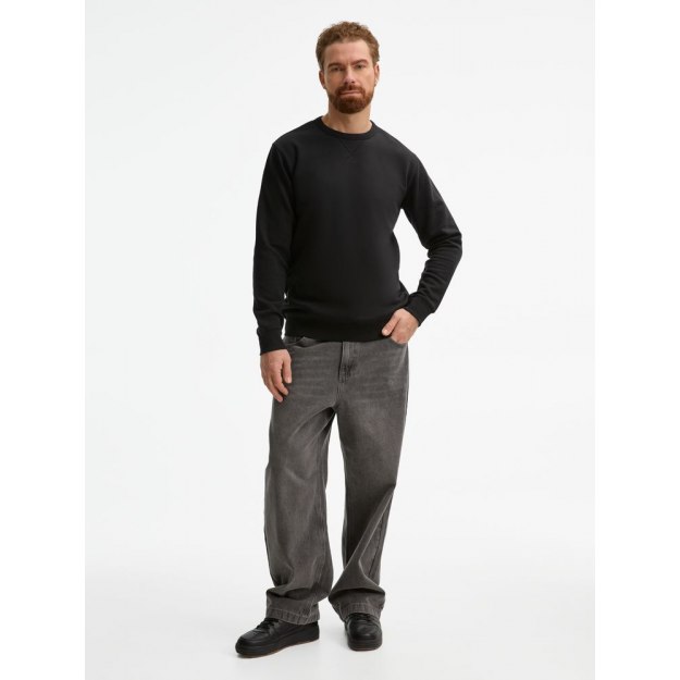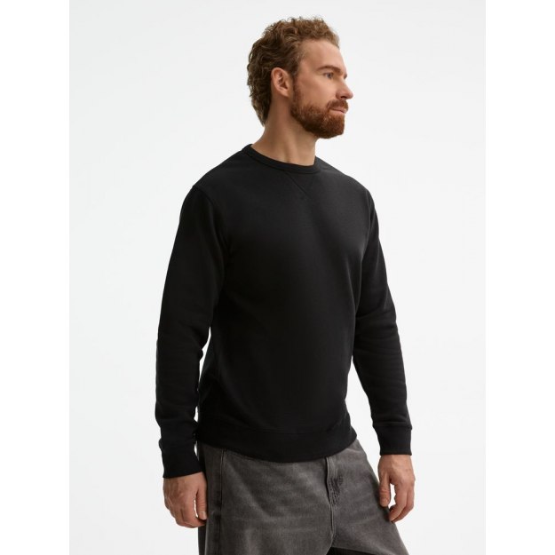 Утепленная толстовка унисекс с круглым вырезом и декоративной треугольной вставкой.