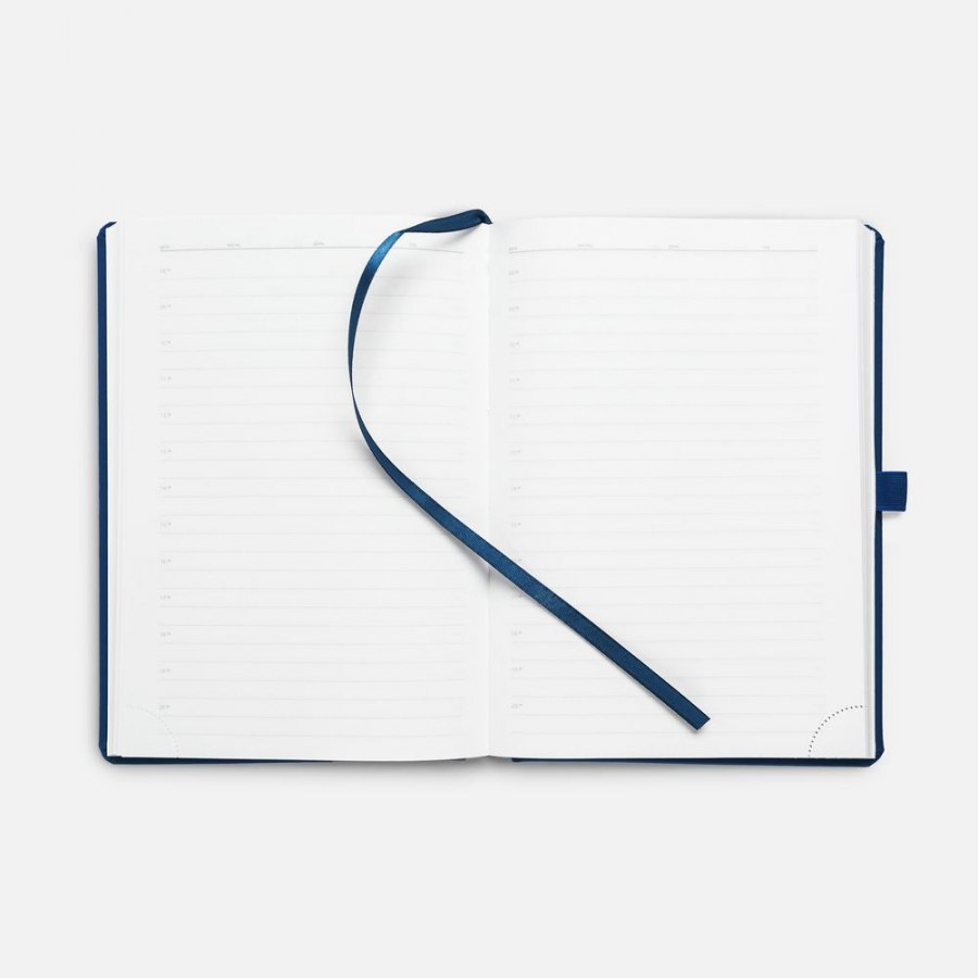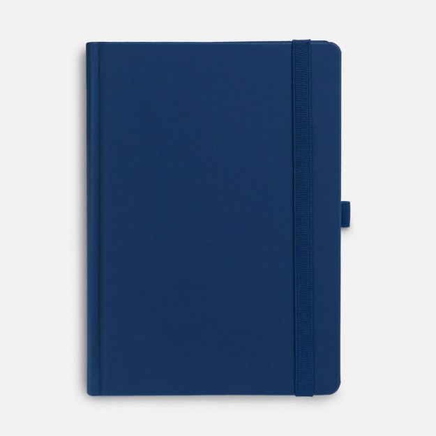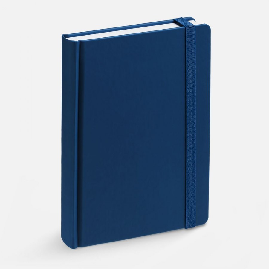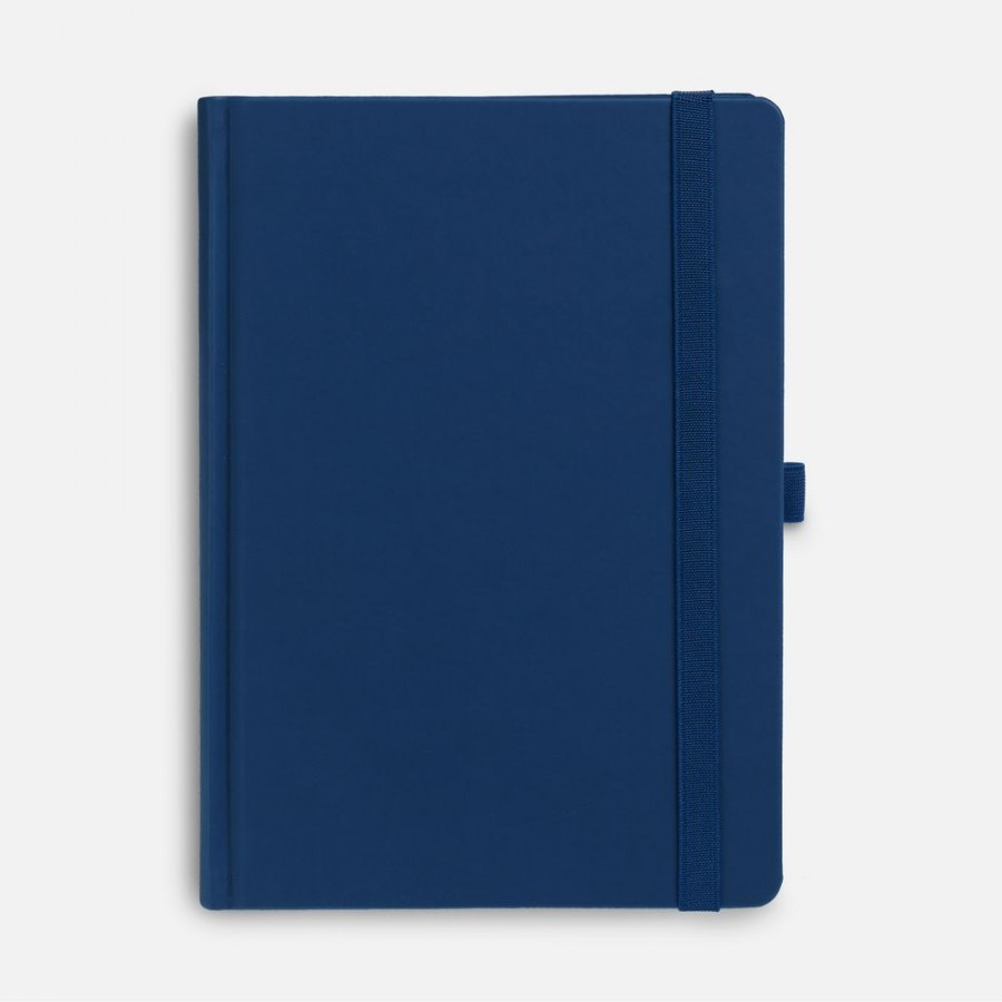 Ежедневник с твердой обложкой без поролона, выполнен из материала Soft Touch Ultra, синий НН, дополнен резинкой шириной 1 см, петлей-резинкой для ручки, капталом и ляссе синего цвета.