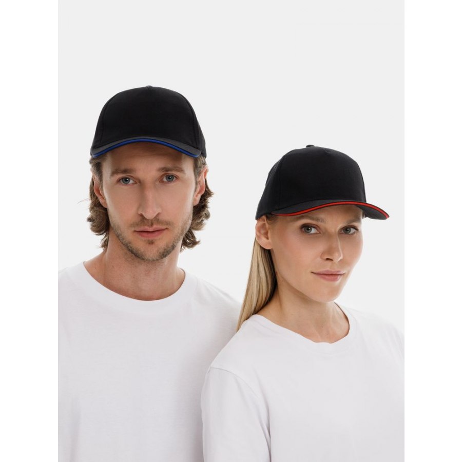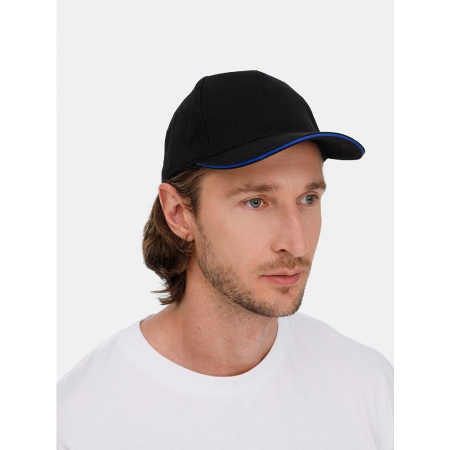 Модель: 5 клиньев без лобового шва, плотный хлопок с начесом, обшивные люверсы, металлическая застежка, козырек "сэндвич".