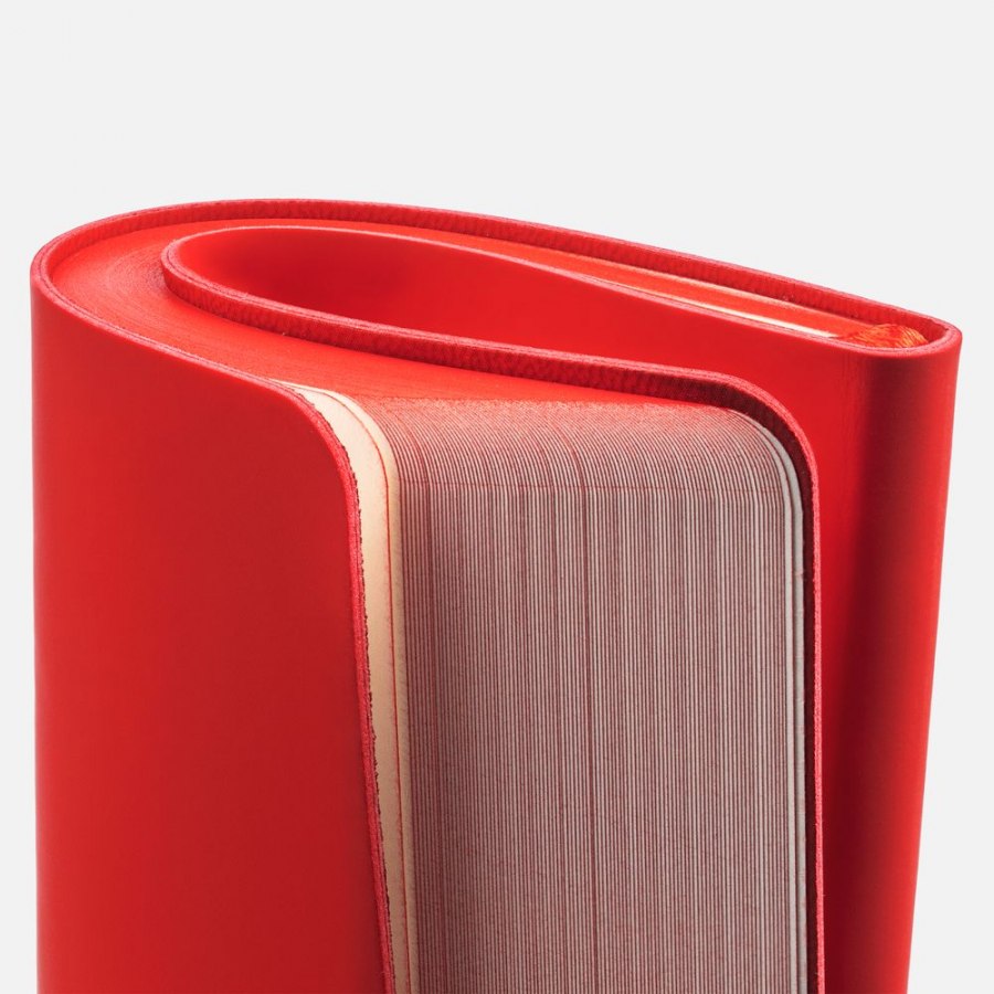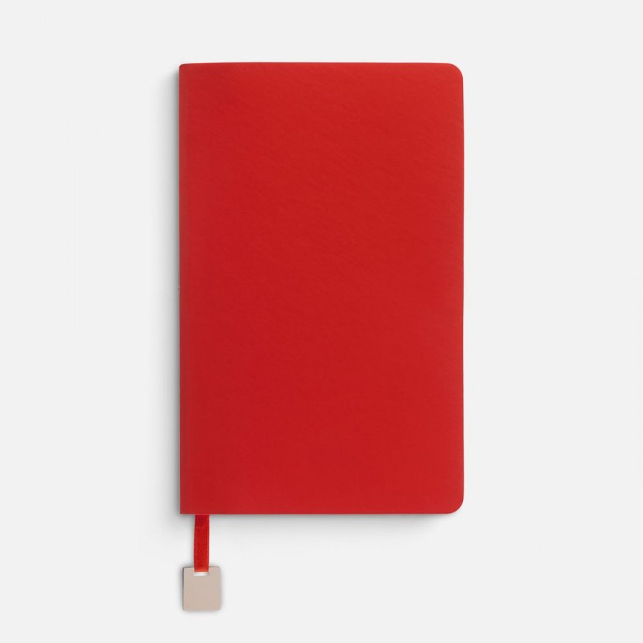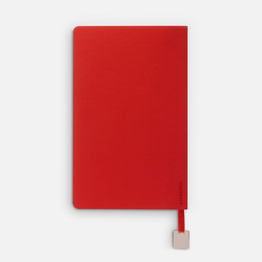 Ежедневник с гибкой обложкой, выполнен из материалов Soft Touch Ultra, красный РР, и красного Latte (внутренняя часть обложки), дополнен ляссе в цвет обложки и металлической шильдой..