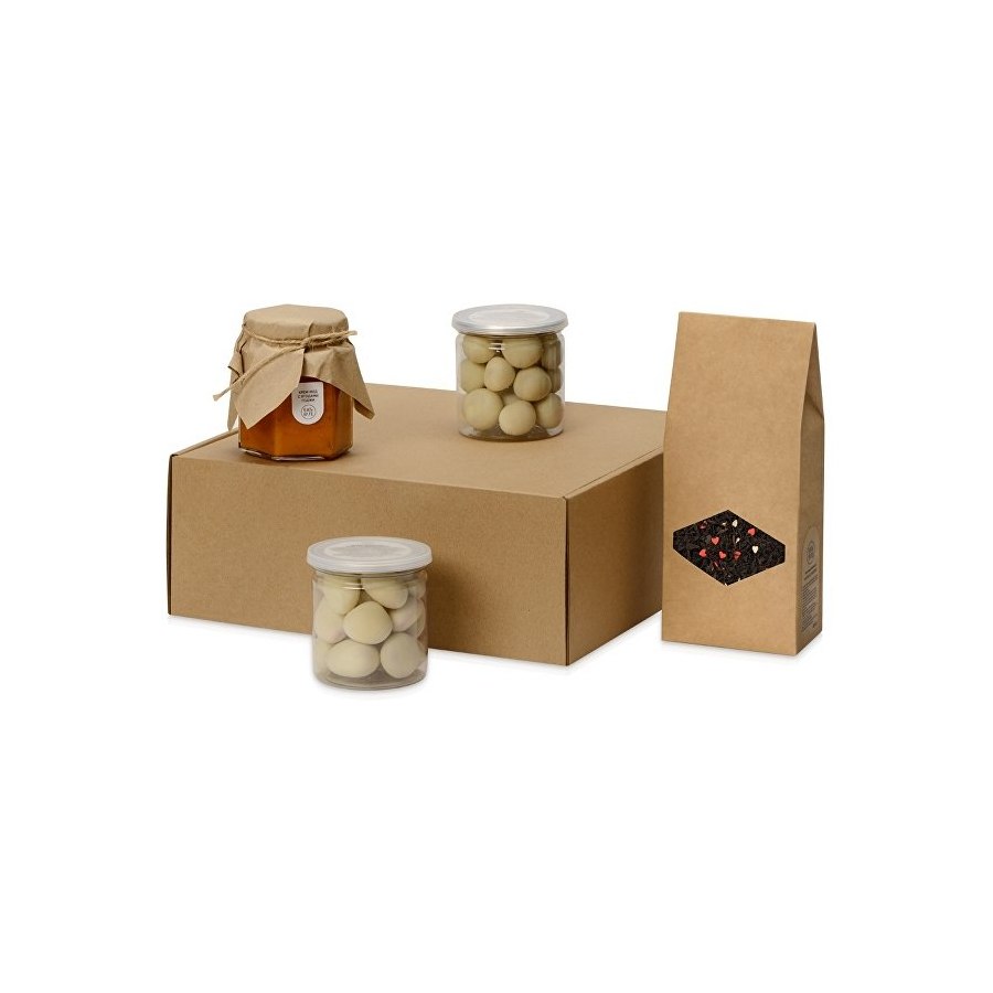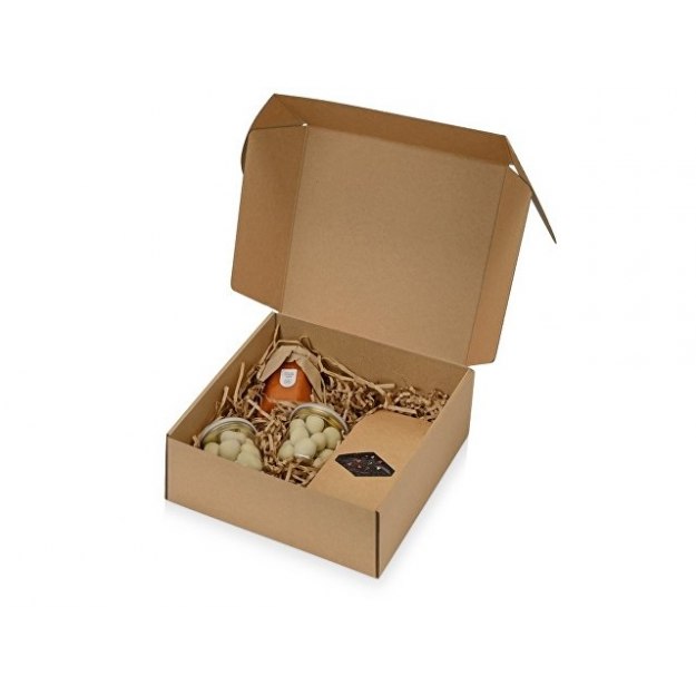 Комплектность: чай черный 95г, клубника в йогуртовой глазури 120г, малина в йогуртовой глазури 115г, крем-мёд с ягодами годжи 250г