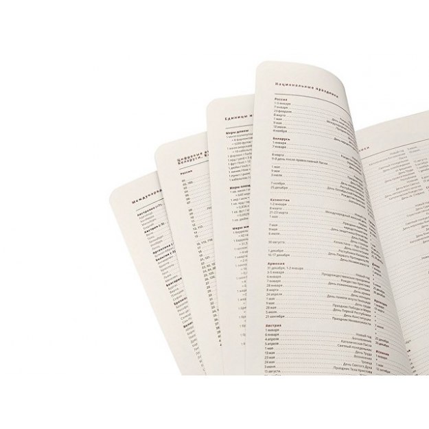Элегантный ежедневник с серебристым обрезом подчеркивает статус владельца. В качестве дополнительных практичных элементов предусмотрен отрывной угол блока и ляссе.