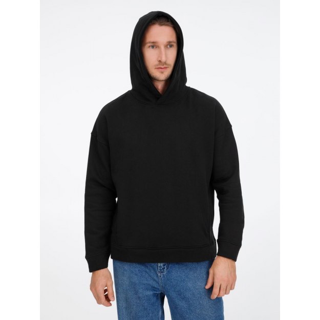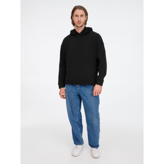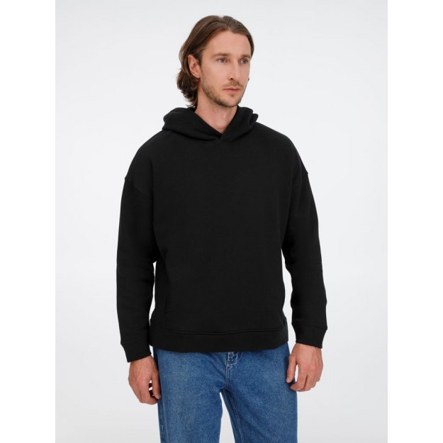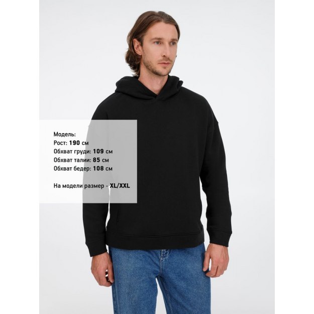 Худи унисекс оверсайз со спущенным плечом и внутренним карманам кенгуру.
