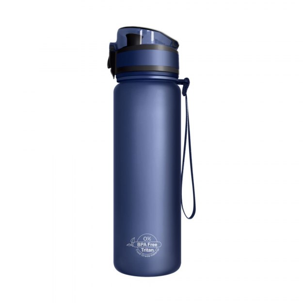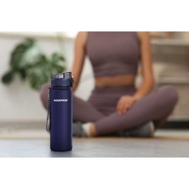 Матовое бархатистое покрытие бутылки приятно на ощупь, широкий ремешок дополнительно фиксирует бутылку во время использования, защитный колпачок не даст воде пролиться в сумке.