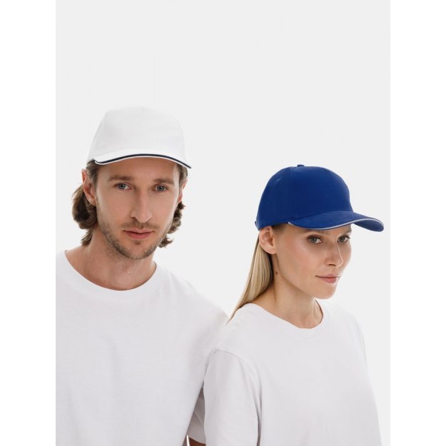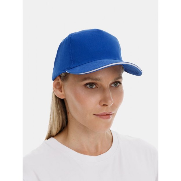 Модель: 5 клиньев без лобового шва, плотный хлопок с начесом, обшивные люверсы, металлическая застежка, козырек "сэндвич".