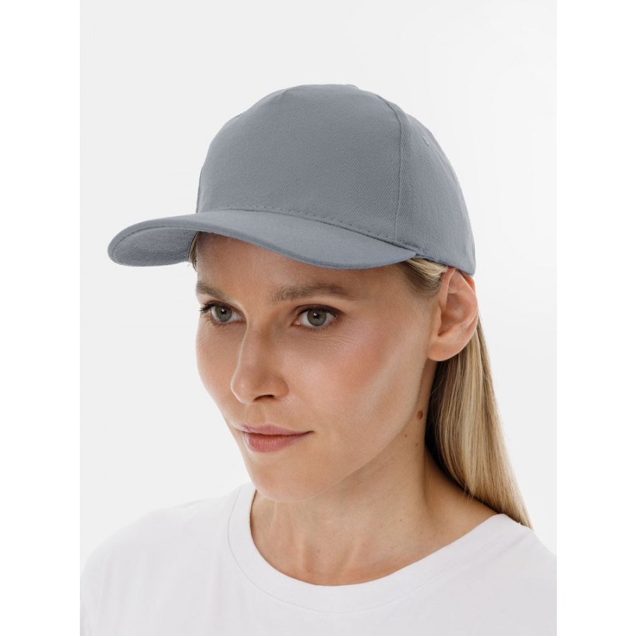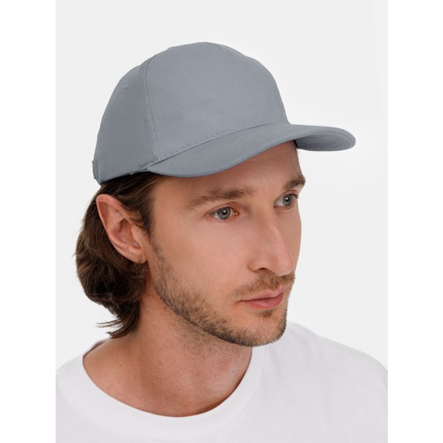 Модель: 5 клиньев без лобового шва, плотный хлопок с начесом, обшивные люверсы, металлическая застежка, козырек "сэндвич".