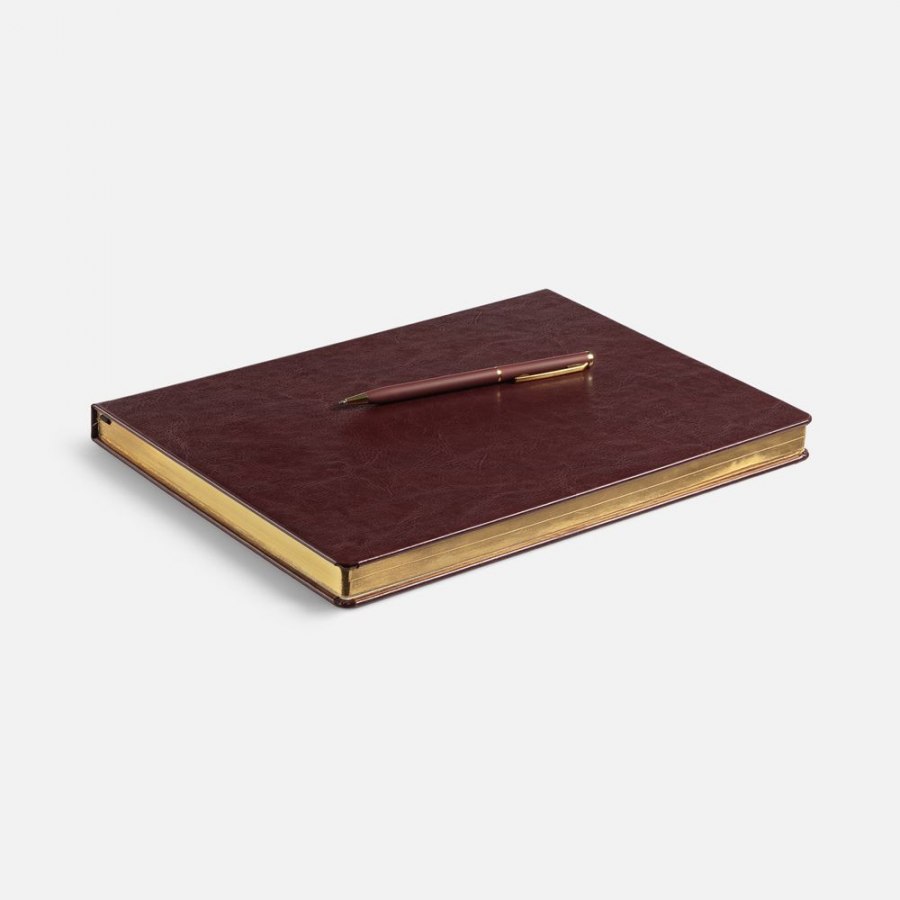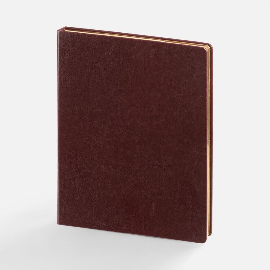 Статусный ежедневник с твердой обложкой и металлизированным обрезом, выполнен из материала Nebraska, бордовый QQ.