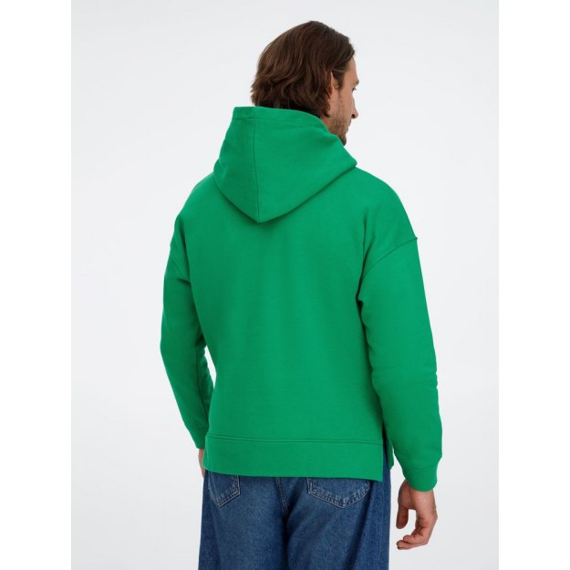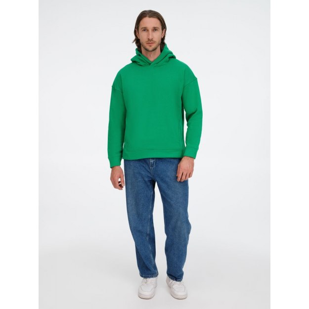 Худи унисекс оверсайз со спущенным плечом и внутренним карманом кенгуру.