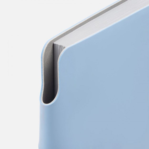 Ежедневник с гибкой обложкой выполнен из материала Soft Touch, голубой JJ и серого Latte (внутренняя часть обложки).