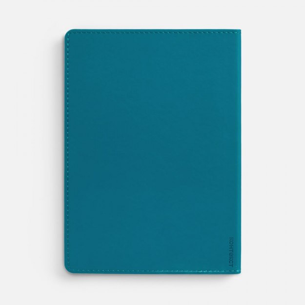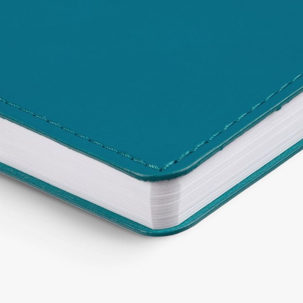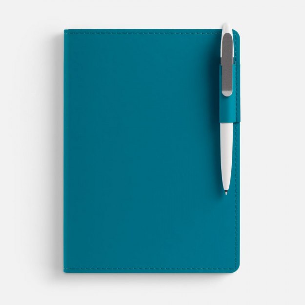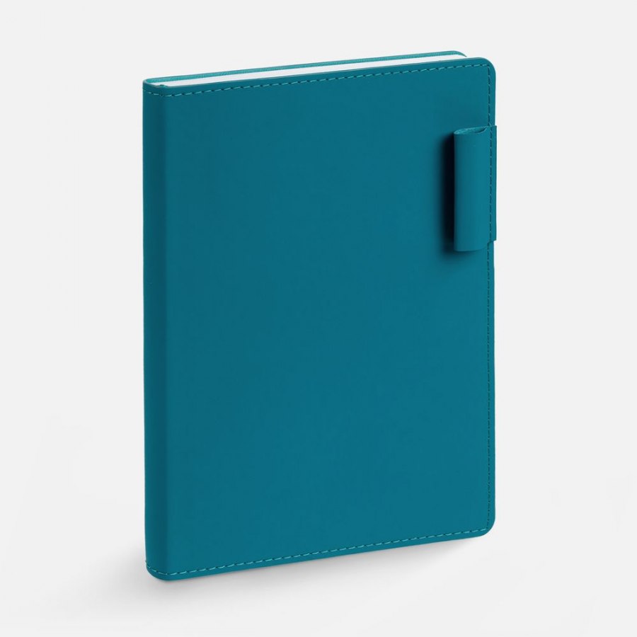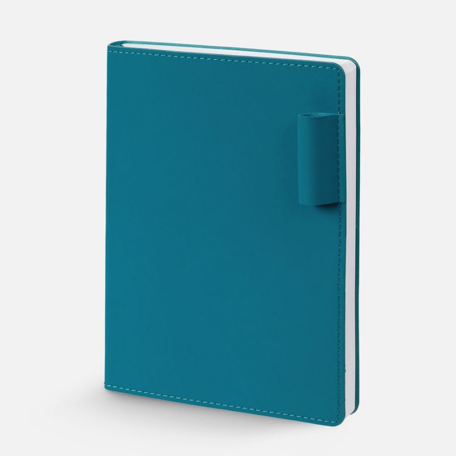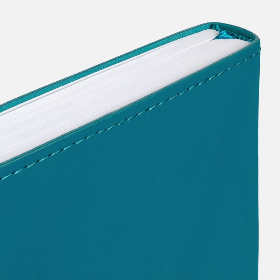 Ежедневник с гибкой обложкой из материала Soft Touch, цвет морской волны II и Latte, морской волны, дополнен петелькой для ручки из покровного материала, капталом, ляссе и закрашенным срезом обложки в цвет материала. Блок 985, без календарной сетки: