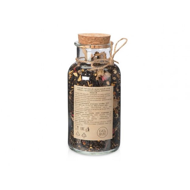Состав: чай чёрный байховый крупнолистовой, кусочки имбиря, сок имбиря, апельсиновая цедра сушёная, малина сублимированная, ароматизатор натуральный Малина