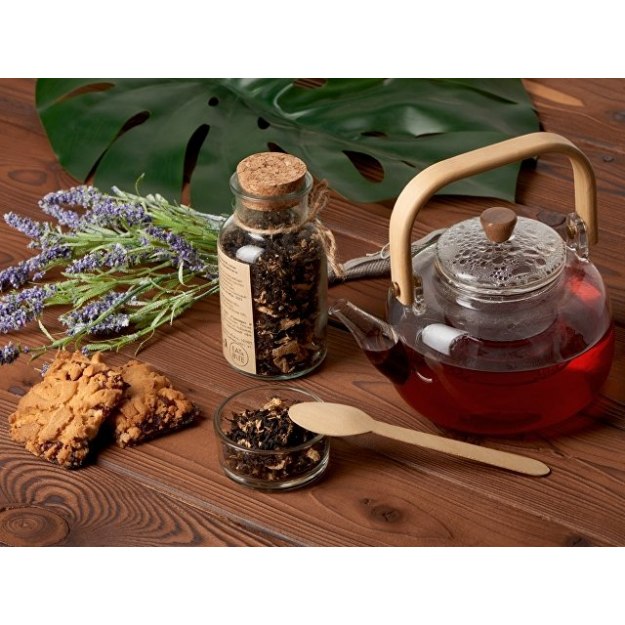 Чай с соком - натуральный, вкусный и полезный для здоровья напиток. Это не просто чай с фруктовыми кусочками и добавками, а чайные листья, наполненные соком свежайших плодов. Для изготовления 2 тонн такого чая используется 20 тонн свежих фруктов. По технологии чайные листья смешиваются с нарезанными кусочками фруктов и пропитываются выделяющимся соком. После этого вобравшие сок листья чая высушиваются и смешиваются с сублимированными ягодами или фруктами, образуя уникальный напиток. Состав: чай черный с имбирем и соком имбиря (чай черный байховый крупнолистовой, кусочки имбиря, сок имбиря), кусочки карамели, ароматизатор натуральный Грецкий орех, ароматизатор натуральный Ванильно-сливочный.