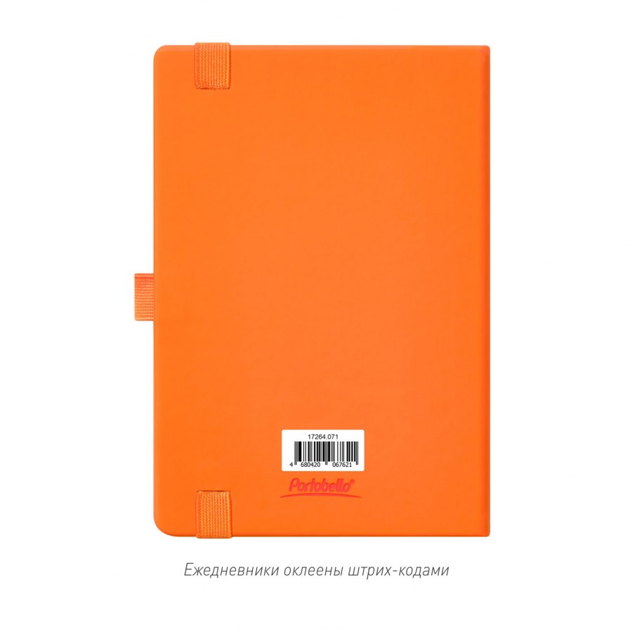Недатированный ежедневник выполнен в жесткой обложке из искусственной кожи со скругленными уголками. Переплетный материал Soft Touch гладкий, матовый, однородный, с эффектом пудры. Цвет – насыщенный оранжевый, динамичный. Страницы светло-кремового оттенка создают контраст с цветовым решением обложки. Выполнены из гладкого офсета, шелковистые, комфортны и приятны руке. Имеют скругленные уголки. Форзац и нахзац матовые оранжевые в тон обложки. Общая тональность изделия яркая, природная, гармоничная. Срез матовый, в тон страниц. Одинарное атласное ляссе оранжевого цвета шириной 6 мм, с легким блеском. Фиксирующая резинка плотная, темно-синего цвета, декорирована прямоугольным фрагментом из материала обложки с прошивкой в тон. Петелька для ручки в тон резинки. Упаковка: пластиковая коробка – есть.