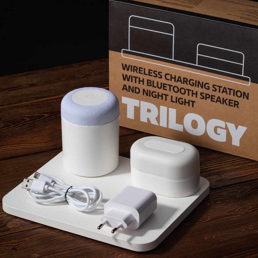 Trilogy — многофункциональное устройство, которое состоит из трех дополняющих друг друга электронных устройств: bluetooth-колонки, переносной лампы и площадки для беспроводной зарядки гаджетов.