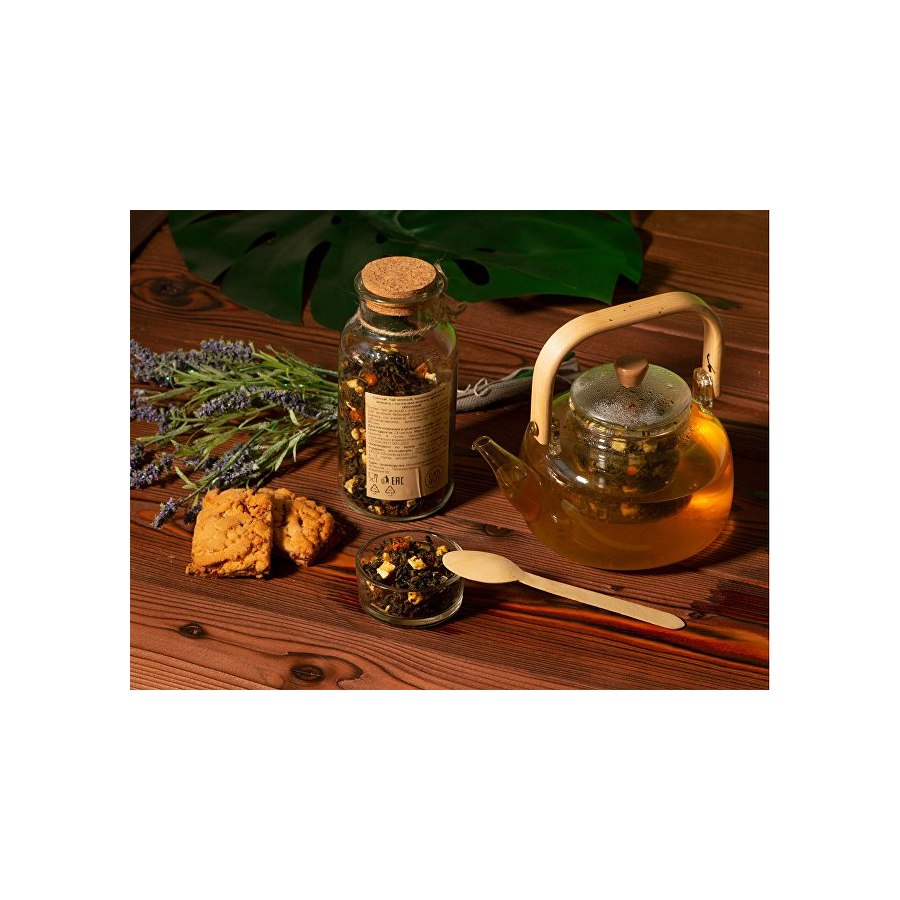 Чай с соком - натуральный, вкусный и полезный для здоровья напиток. Это не просто чай с фруктовыми кусочками и добавками, а чайные листья, наполненные соком свежайших плодов. Для изготовления 2 тонн такого чая используется 20 тонн свежих фруктов. По технологии чайные листья смешиваются с нарезанными кусочками фруктов и пропитываются выделяющимся соком. После этого вобравшие сок листья чая высушиваются и смешиваются с сублимированными ягодами или фруктами, образуя уникальный напиток. Состав: чай зелёный с ананасом и соком ананаса (чай зелёный байховый крупнолистовой, кусочки ананаса, сок ананаса), яблоко сушеное, облепиха сублимированная, ароматизатор натуральный Яблоко.