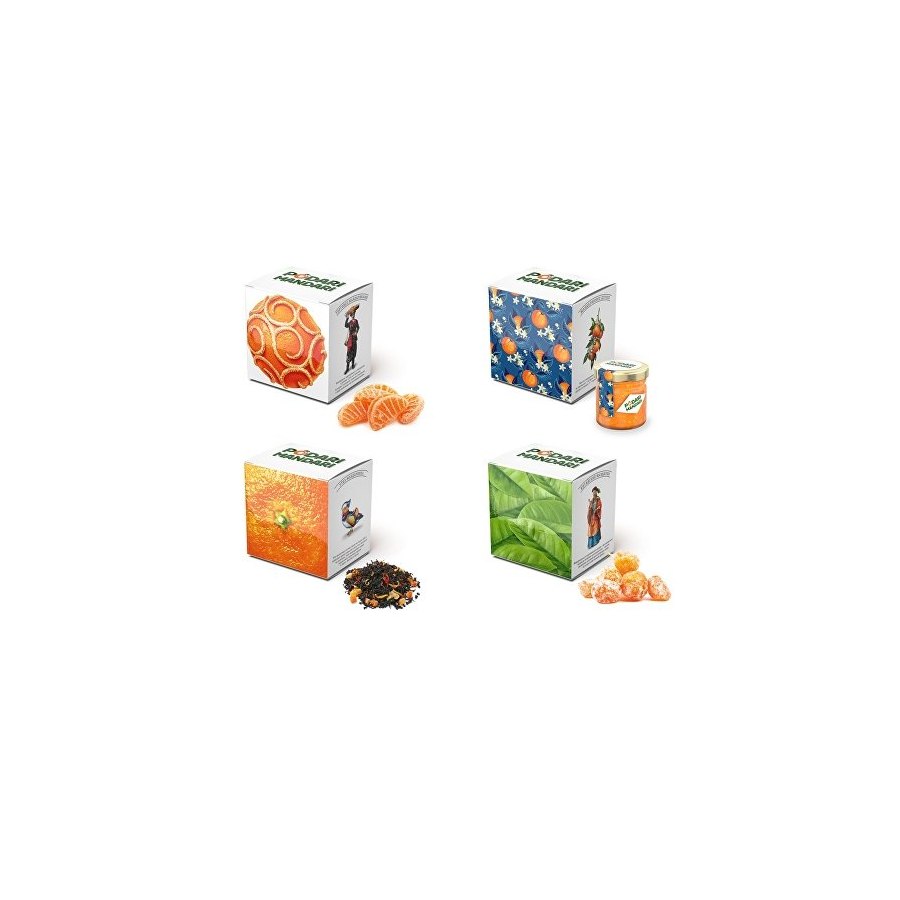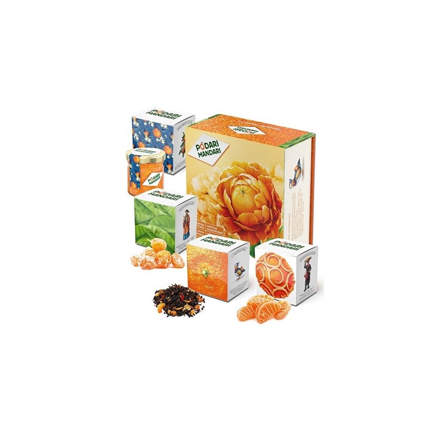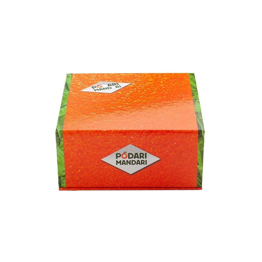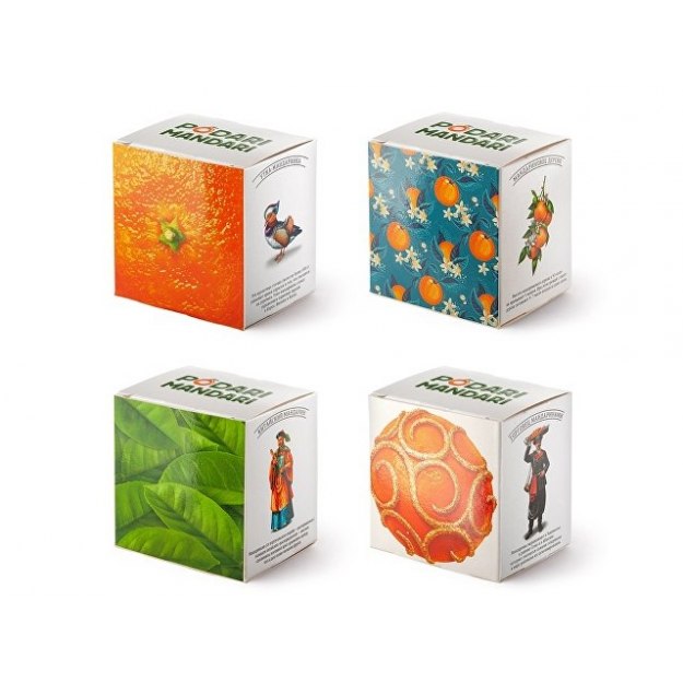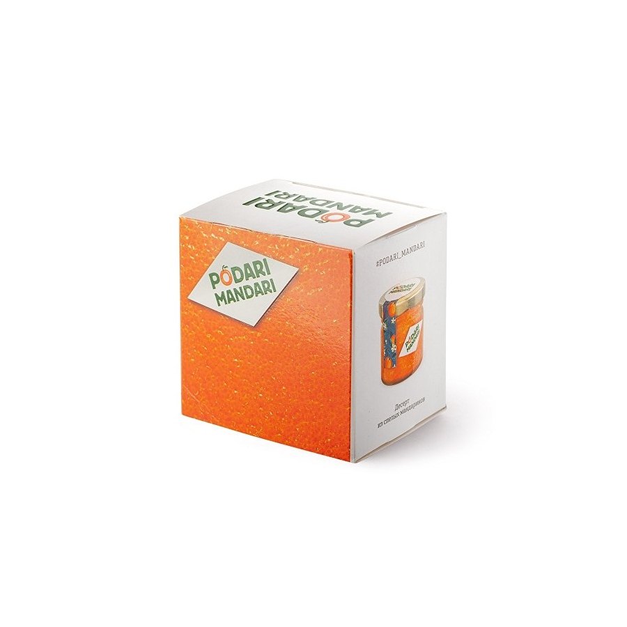 Гастрономический подарочный набор ПодариМандари. Набор представляет собой метафору мандарина – одного из главных символов Нового года. Состоит из 4 продуктов: – чай с цедрой, сегментами и цветами апельсина; – мармелад из мандаринов; – цукаты из кумквата; – цитрусовые леденцы. Продукты упакованы в небольшие картонные коробочки размером 70 х 70 х 55 мм и помещены в шкатулку из переплётного картона с магнитным клапаном. Состав: Кумкват: кумкват, сахар, Е220. Мармелад: сахар, мандариновое пюре, патока, лимонная кислота, пектин. Чай: чай черный байховый, лепестки календулы, ягоды облепихи, имбирь, кусочки апельсина, шелковица. Леденцы: патока, вода, регуляторы кислотности (лимонная кислота, молочная кислота), ароматизаторы, идентичные натуральным, краситель: аннато, сахар.