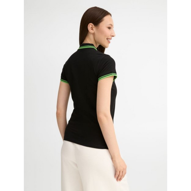 Классическая слегка приталенная модель с боковыми разрезами по низу изделия. Воротник и низ рукавов в резинку, укрепляющая тесьма по вороту. Две контрастные полоски на воротнике и рукавах. Планка с тремя пуговицами тон в тон, запасная пуговица на внутренней боковой строчке.